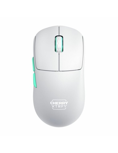CHERRY XTRFY M68 Wireless. Interfaz del dispositivo: RF inalámbrico, Resolución de movimiento: 26000 DPI, Tipo de botones: Botones presionados, Cantidad de botones: 5, Tipo de desplazamiento: Rueda. Fuente de energía: Baterías. Color del producto: Azul, Turquesa, Blanco