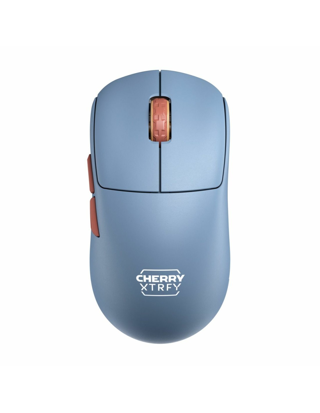 CHERRY XTRFY M68 Wireless. Interfaz del dispositivo: RF inalámbrico, Resolución de movimiento: 26000 DPI, Tipo de botones: Botones presionados, Cantidad de botones: 5, Tipo de desplazamiento: Rueda. Fuente de energía: Baterías. Color del producto: Negro, Azul, Marrón