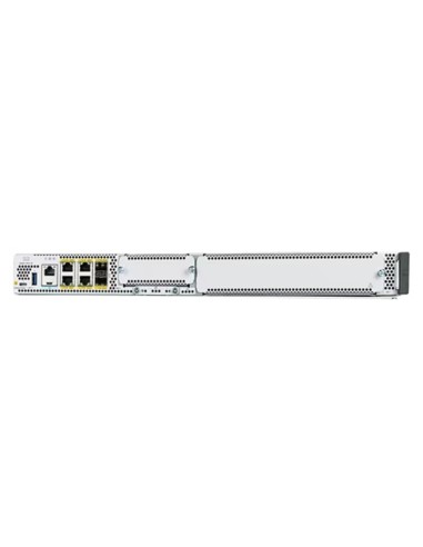 Cisco C8300-1N1S-6T. Estándares de red: IEEE 802.1Q, IEEE 802.1ag, IEEE 802.3ah, Tipo de interfaz ethernet: Gigabit Ethernet, Ethernet LAN, velocidad de transferencia de datos: 100,1000 Mbit/s. Versión USB: 3.2 Gen 1 (3.1 Gen 1). Protocolo de conmutación: MPLS, Protocolo de routing: BGP, EIGRP, HSRP, IP, IS-IS, LISP, MPLS, OSPF, OSPFv3, RIP, RIP-2, VRRP, Funciones de IPv4 e IPv6: IPv4/IPv6 access-control list (ACL). Algoritmos de seguridad soportados: 3DES, 128-bit AES, 256-bit AES, 256-bit AES-XTS, 2048-bit RSA, DES, MD5, SHA-1, SHA-2, SHA-256,..., Método de autenticación: AAA, RSA (2048 bit), ESP-256-CBC, HMAC-SHA1, ECDSA (256/384 bit). Fabricante de procesador: Intel, Unidad de almacenamiento: SSD, Capacidad de almacenamiento interno: 16 GB