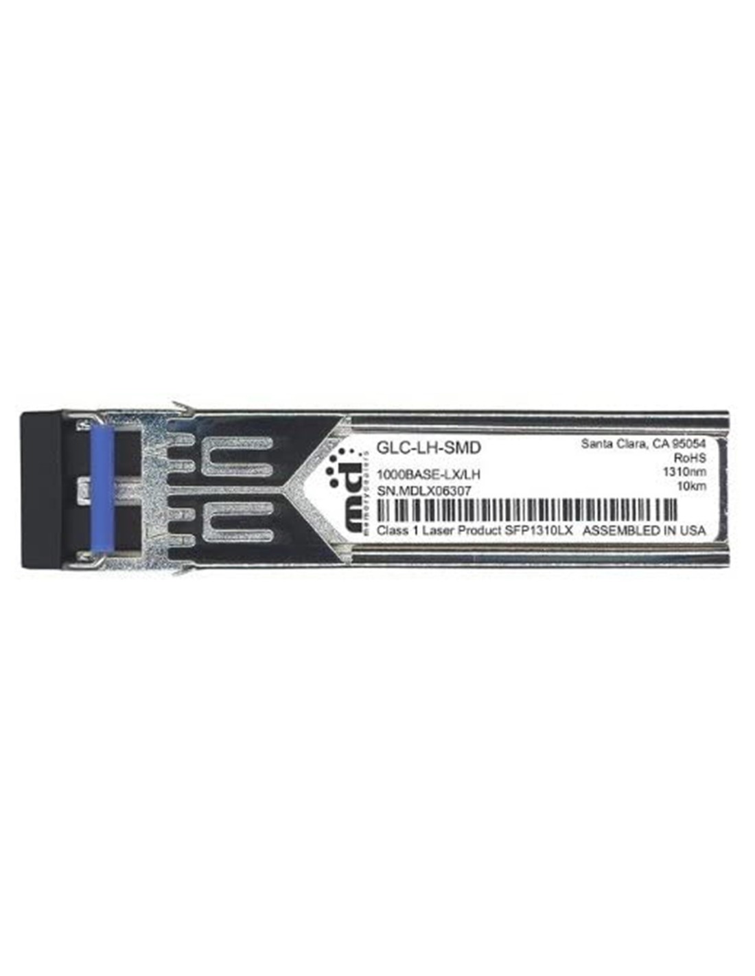 Cisco GLC-LH-SMD. Rango máximo de transferencia de datos: 1000 Mbit/s, Tipo de interfaz: SFP, Conector fibra óptica: LC, PC. Productos compatibles: Catalyst Express 500/520 Cisco ME 3400/3600X/3800X/4900/6500 Catalyst.... Cantidad por paquete: 1 pieza(s). Ancho del paquete: 143 mm, Profundidad del paquete: 158,8 mm, Altura del paquete: 44,5 mm. País de origen: China