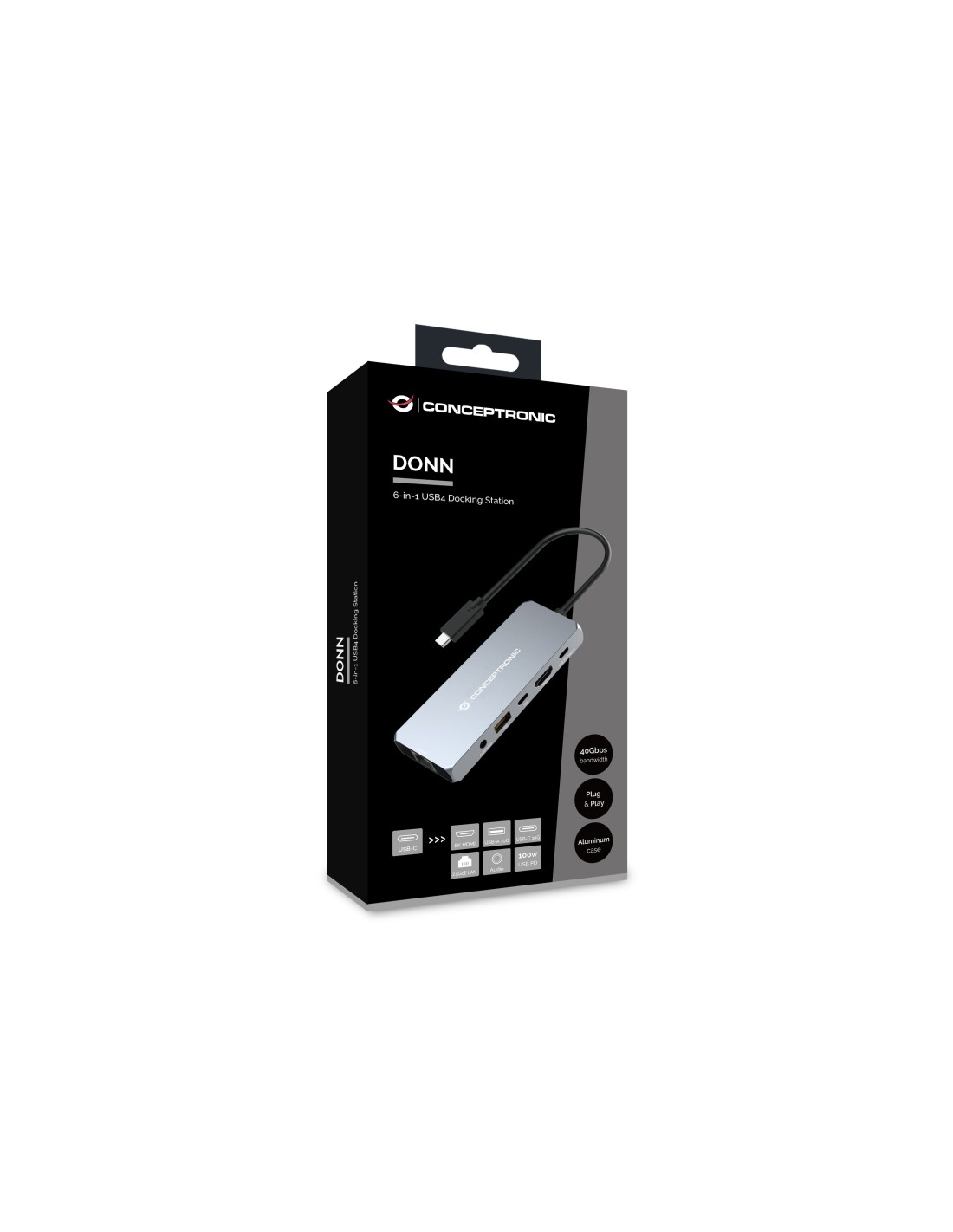 Conceptronic DONN22G. Tecnología de conectividad: Alámbrico, Interfaz de host: USB 3.2 Gen 2 (3.1 Gen 2) Type-C, Entrega de energía USB (USB Power Delivery) de hasta: 100 W. Ethernet LAN, velocidad de transferencia de datos: 2500 Mbit/s. Color del producto: Gris, Velocidad de transferencia de datos: 10 Gbit/s, Tipo HD: 8K Ultra HD. Alimentación: USB, Conector eléctrico: USB Tipo C. Sistema operativo Windows soportado: Windows 10, Windows 8, Windows 7, Windows XP, Windows Vista, Windows 11, Sistema operativo MAC soportado: Mac OS X 10.7 Lion, Mac OS X 10.7.5 Lion, Mac OS X 10.10 Yosemite, Mac OS X 10.8 Mountain Lion,..., Otros sistemas operativos soportados: Android