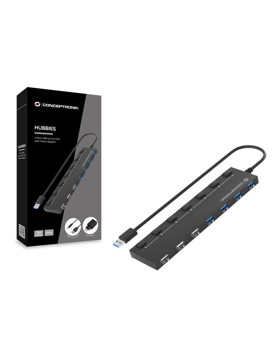 Conceptronic HUBBIES09BP, USB 3.2 Gen 1 (3.1 Gen 1) Type-A, USB 2.0, USB 3.2 Gen 1 (3.1 Gen 1) Type-A, 5000 Mbit/s, Negro, 0,9 m, China