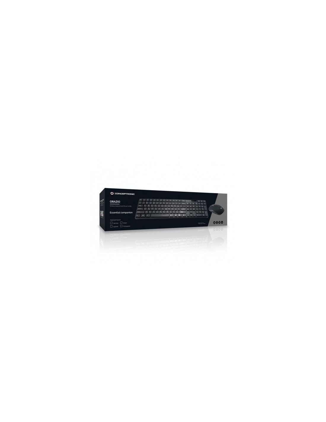 Conceptronic Orazio. Formato del teclado: Completo (100%). Estilo de teclado: Derecho. Tecnología de conectividad: Inalámbrico, Interfaz del dispositivo: RF inalámbrico, Diseño de teclado: QWERTY, Teclado, cantidad de teclas: 109, Uso recomendado: Hogar. Color del producto: Negro. Ratón incluido