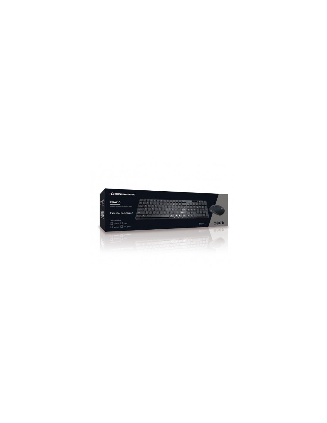 Conceptronic Orazio. Formato del teclado: Completo (100%). Estilo de teclado: Derecho. Tecnología de conectividad: Inalámbrico, Interfaz del dispositivo: RF inalámbrico, Diseño de teclado: QWERTY, Teclado, cantidad de teclas: 109, Uso recomendado: Hogar. Color del producto: Negro. Ratón incluido