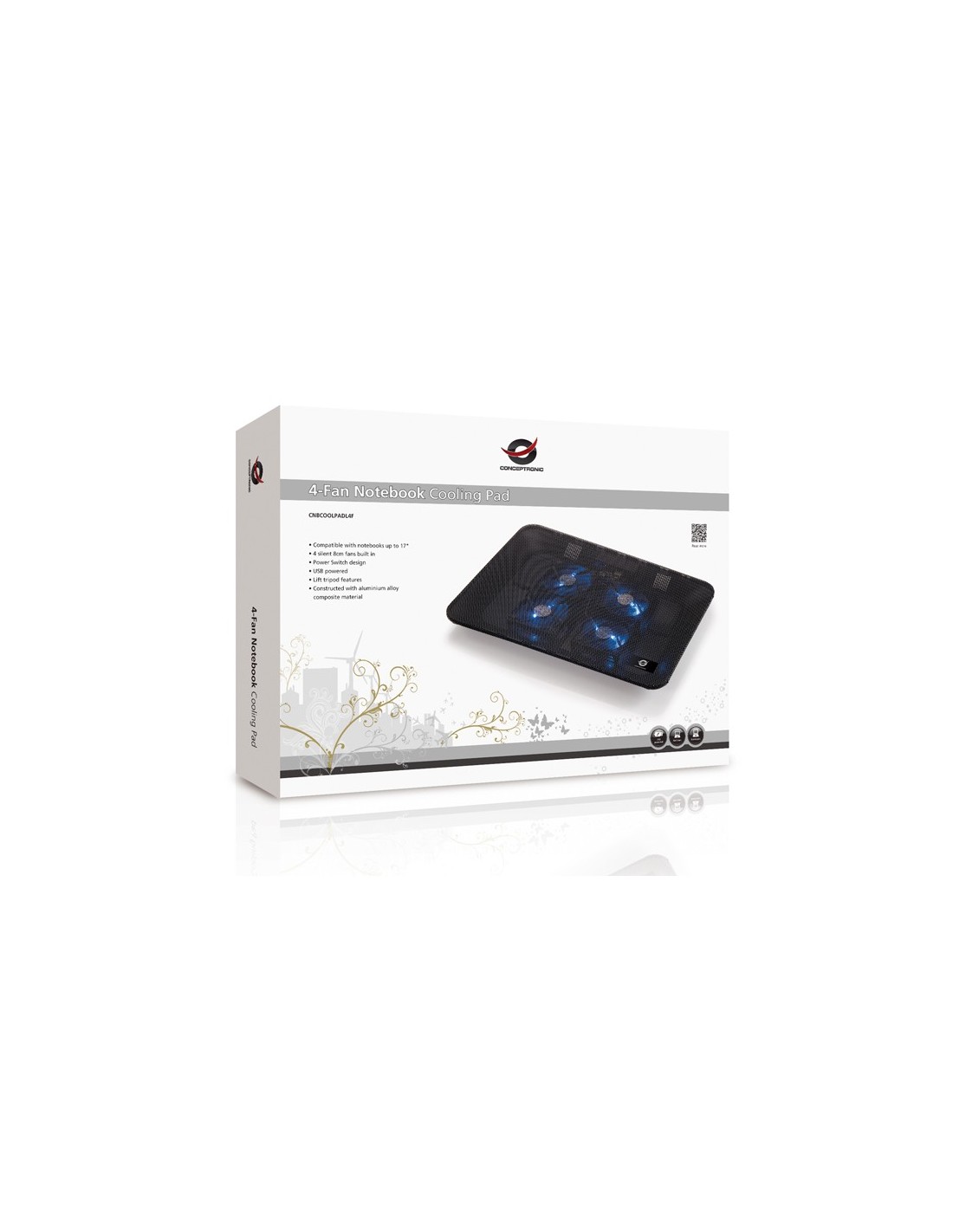 Conceptronic Plataforma de refrigeración de 4 ventiladores para equipos portátiles, 39,6 cm (15.6"), 4 pieza(s), 8 cm, Negro, Aluminio, USB