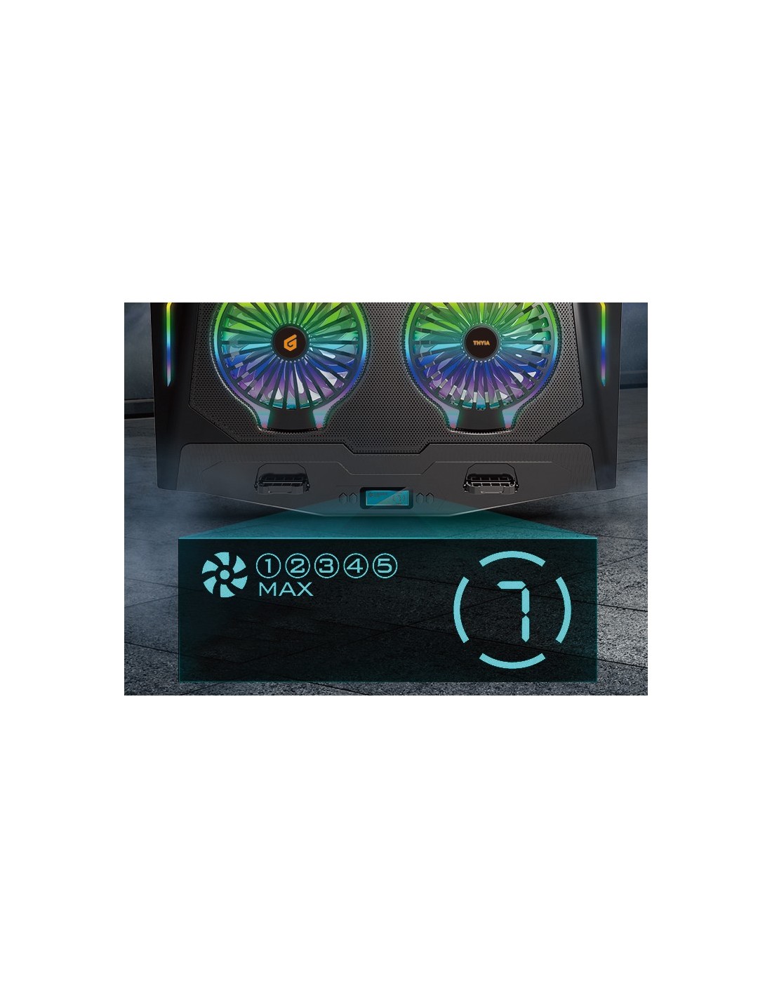 Conceptronic THYIA02B. Tamaño máximo de pantalla: 43,2 cm (17"), Número de ventiladores incluidos: 2 pieza(s), Tipo de control: Botones. Color del producto: Negro, Iluminación de color: Azul, Verde, Rojo, País de origen: China. Interfaz de host: USB. Alimentación: USB. Ancho: 296 mm, Profundidad: 50 mm, Altura: 460 mm
