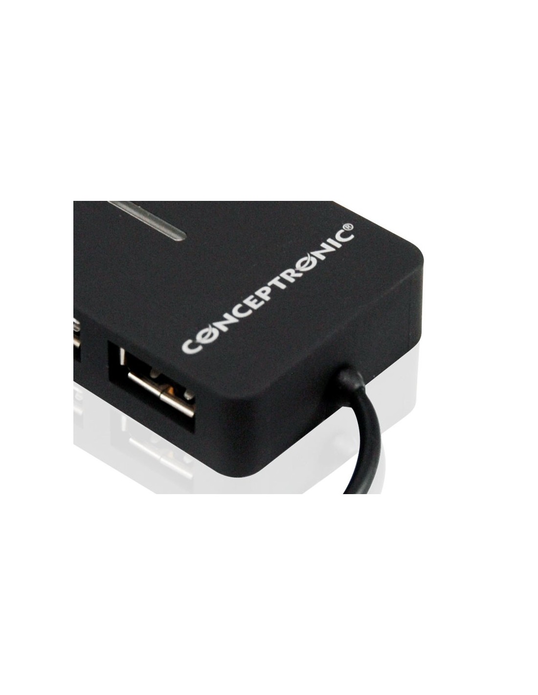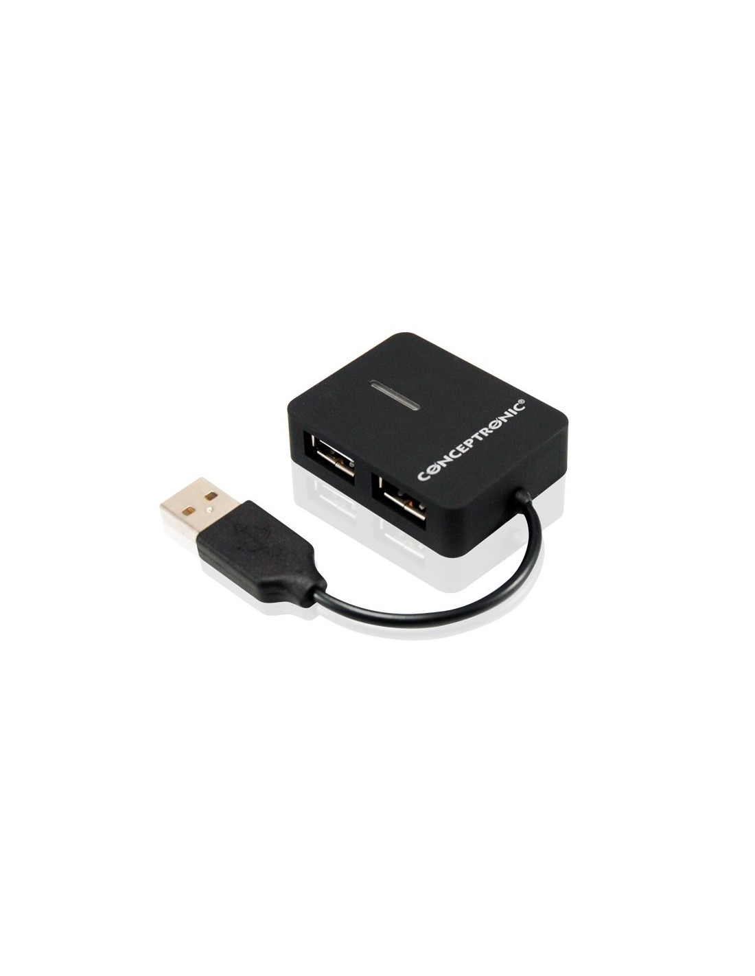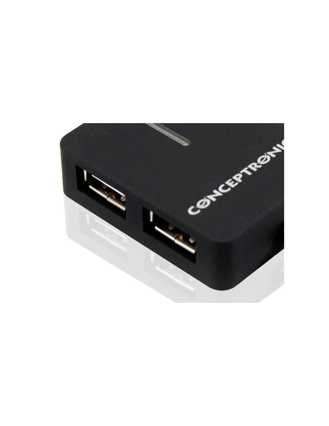 Conceptronic Travel 4 Ports USB Hub. Interfaces de concentradores: USB 2.0. Velocidad de transferencia de datos: 480 Mbit/s. Sistemas operativos compatibles: Windows XP, Windows Vista, Windows 7. Ancho: 40 mm, Profundidad: 50 mm, Altura: 10 mm