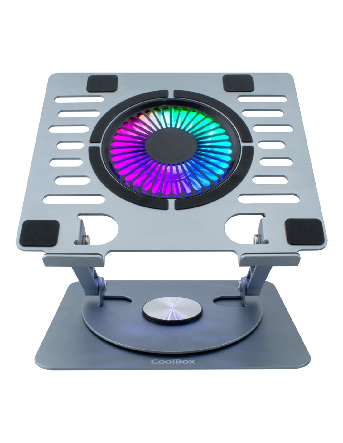 CoolBox BASE REFRIGERADORA COOLAIR 1VRGB ALUMINIO PORTATIL 17.3", 43,2 cm (17"), 1 pieza(s), 11 cm, Botones, Giratorio, 1000 RPM, 38 cfm
