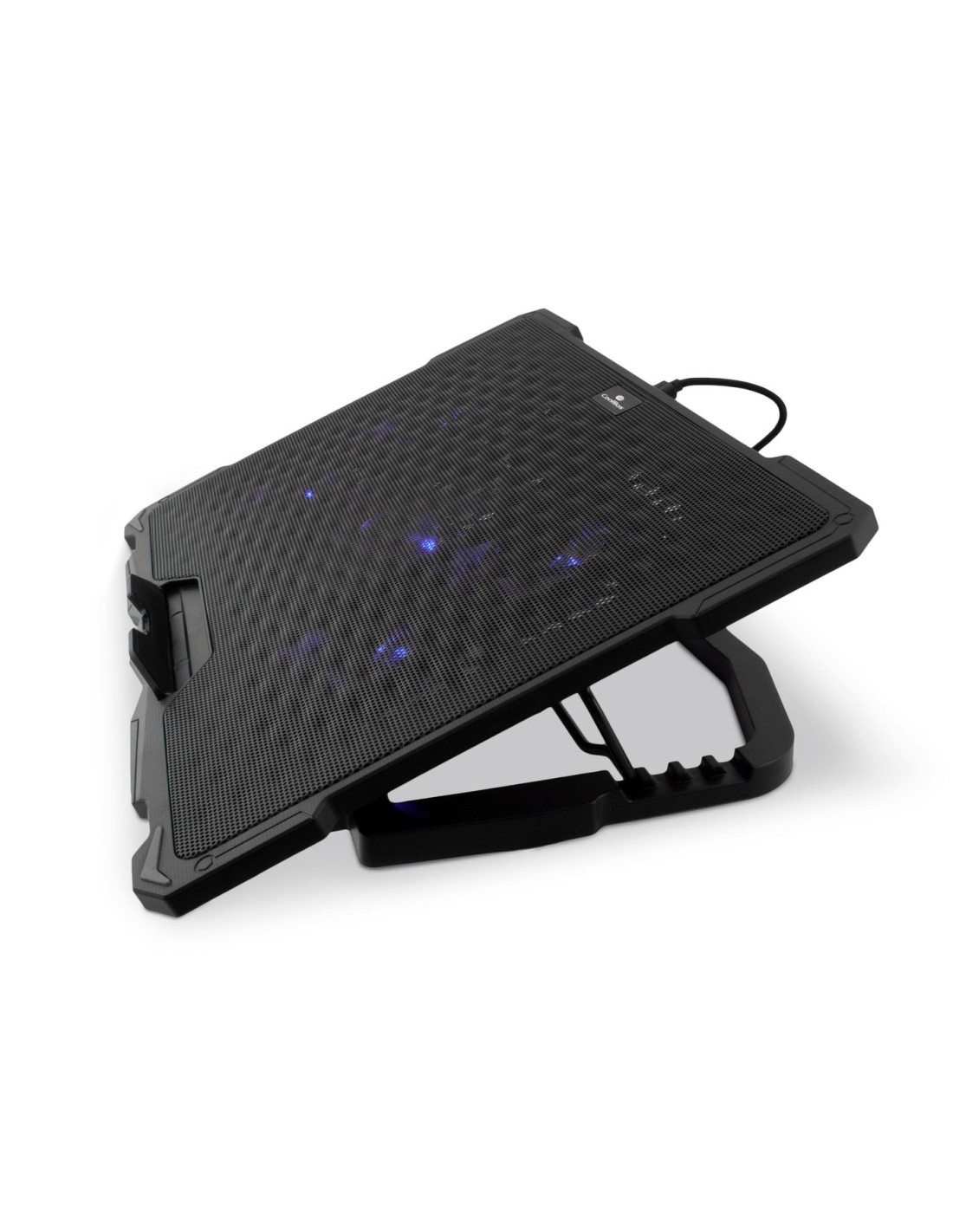 CoolBox BASE REFRIG.PORTATIL 17" SILENCIOSA 5 VENT NCP17-V5. Tamaño máximo de pantalla: 43,9 cm (17.3"), Número de ventiladores incluidos: 5 pieza(s), Diámetro de ventilador: 12 cm. Color del producto: Negro, Material: Plástico, Iluminación de color: Azul. Interfaz de host: USB. Alimentación: USB, Voltaje de entrada: 5 V. Longitud de cable: 0,6 m, Ancho: 410 mm, Profundidad: 295 mm