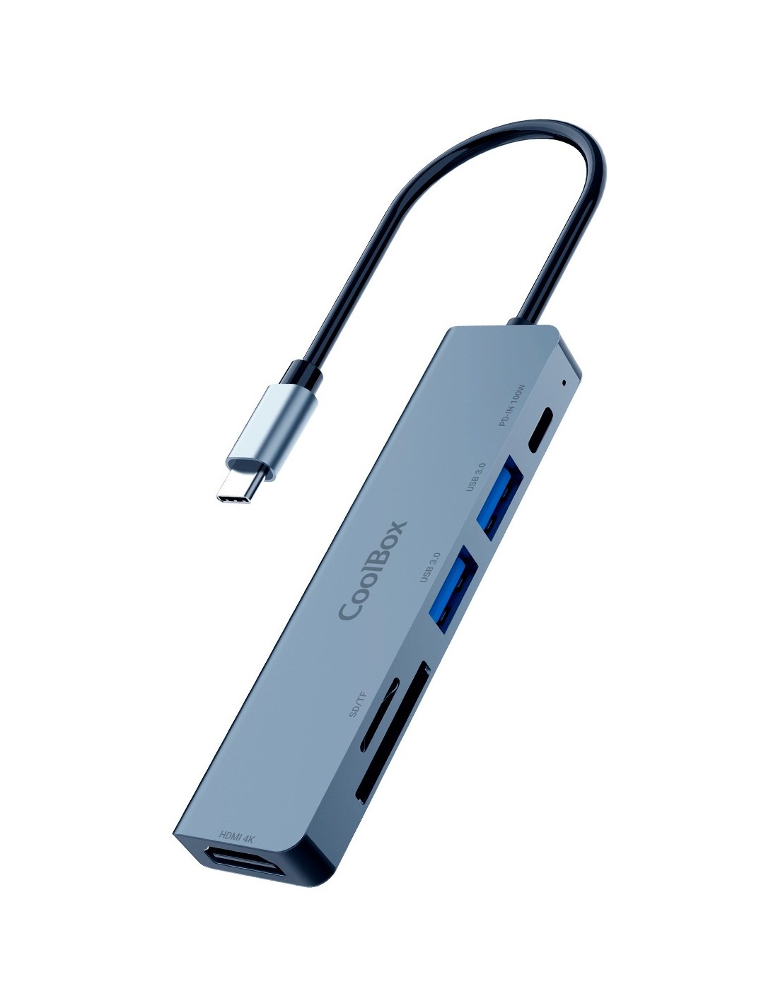 CoolBox MINIDOCK C61 ALUMINIO USB-C A HDMI 4K/2xUSB-A/USB-C PD/SD/MICROSD PC/MAC/CONSOLAS
