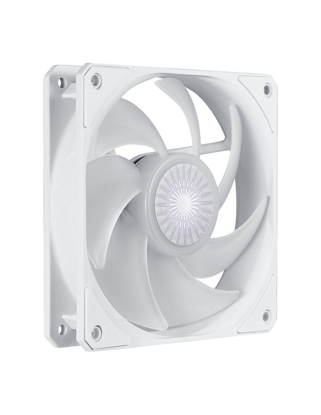 Cooler Master SickleFlow 120 ARGB White Edition 3 In 1. Tipo: Ventilador, Diámetro de ventilador: 12 cm, Velocidad de rotación (mín.): 650 RPM, Velocidad de rotación (máx.): 1800 RPM, Presión máxima de aire: 2,5 mmH2O, Tipo de soporte: Rodamiento tipo rifle. Voltaje: 12 V. Ancho: 120 mm, Profundidad: 120 mm, Altura: 25 mm. Color del producto: Blanco