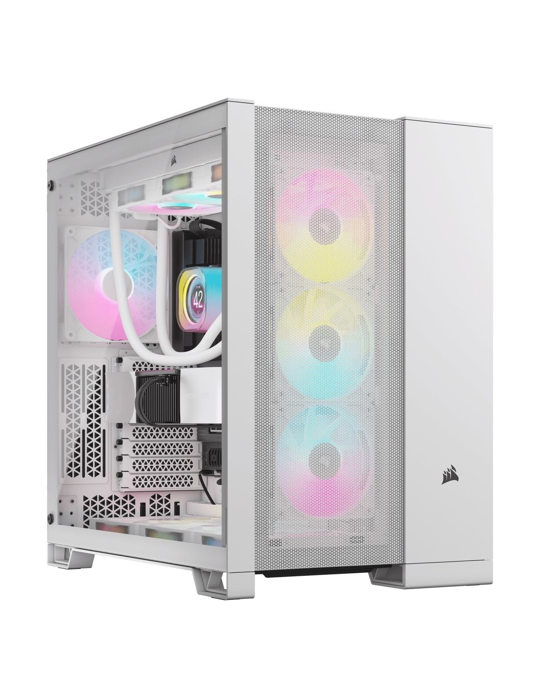Corsair 6500D AIRFLOW. Factor de forma: Midi Tower, Tipo: PC, Color del producto: Blanco. Tamaños compatibles con el radiador frontal: 120,140,240,280,360 mm. Tamaños de disco duro soportados: 2.5,3.5". Ancho: 328 mm, Profundidad: 481 mm, Altura: 496 mm