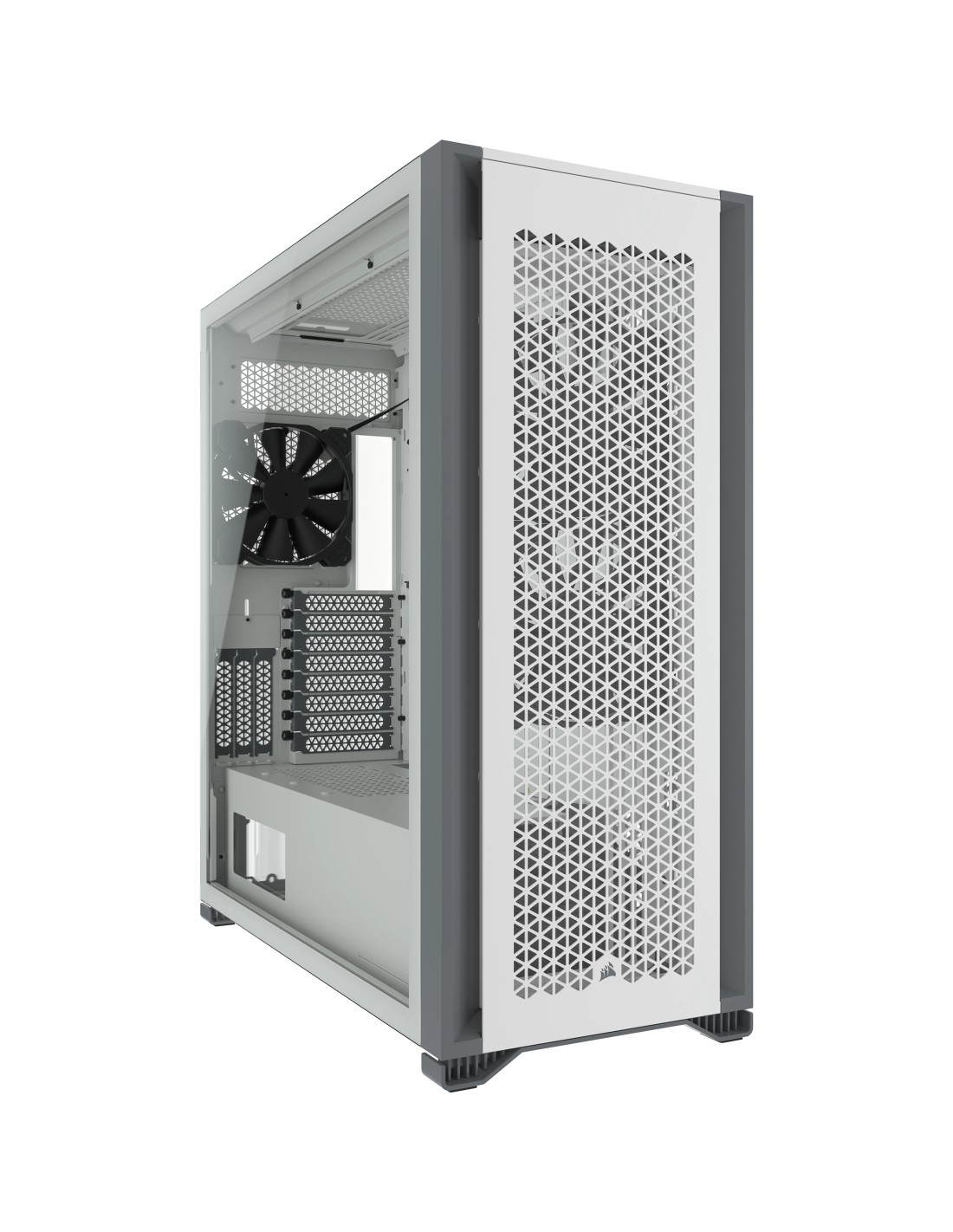 Corsair 7000D AIRFLOW. Factor de forma: Full Tower, Tipo: PC, Color del producto: Blanco. Ubicación de fuente de alimentación: Fondo, Factores de forma de la fuente de alimentación compatibles: ATX. Ventiladores frontales instalados: 2x 140 mm, Diámetro de ventiladores frontales soportados: 120,140 mm, Ventiladores traseros instalados: 1x 140 mm. Tamaños de disco duro soportados: 2.5,3.5". Ancho: 248 mm, Profundidad: 550 mm, Altura: 600 mm