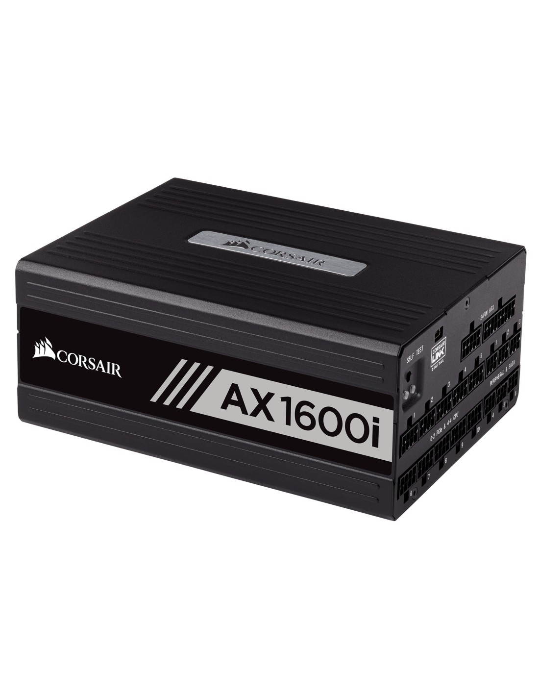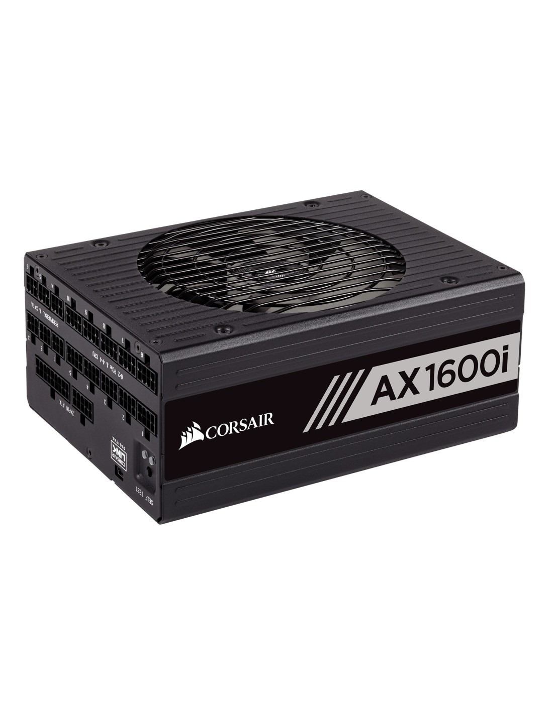 Corsair AX Series AX1600i. Potencia total: 1600 W, Voltaje de entrada AC: 100 - 240 V, Frecuencia de entrada AC: 50 - 60 Hz. Tipo de cableado: Totalmente modular. Utilizar con: PC, Factor de forma de fuente de alimentación (PSU): ATX, Certificación 80 PLUS: 80 PLUS Titanium. Color del producto: Negro, Tipo de enfriamiento: Activo, Diámetro de ventilador: 14 cm. Ancho: 200 mm, Profundidad: 150 mm, Altura: 86 mm