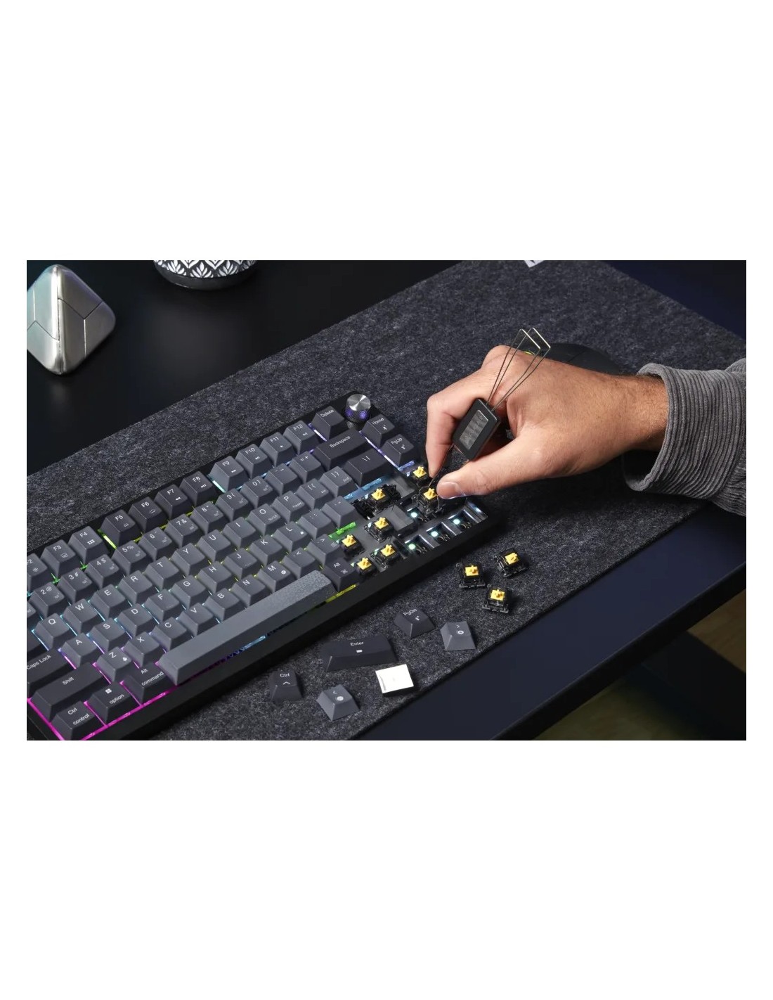 Corsair CH-91D401L-ES. Formato del teclado: 75%. Estilo de teclado: Derecho. Tecnología de conectividad: Alámbrico, Interfaz del dispositivo: USB, Interruptor del teclado: Interruptor mecánico, Diseño de teclado: QWERTY. Tipo de retroiluminación: LED RGB. Uso recomendado: Juego. Color del producto: Negro