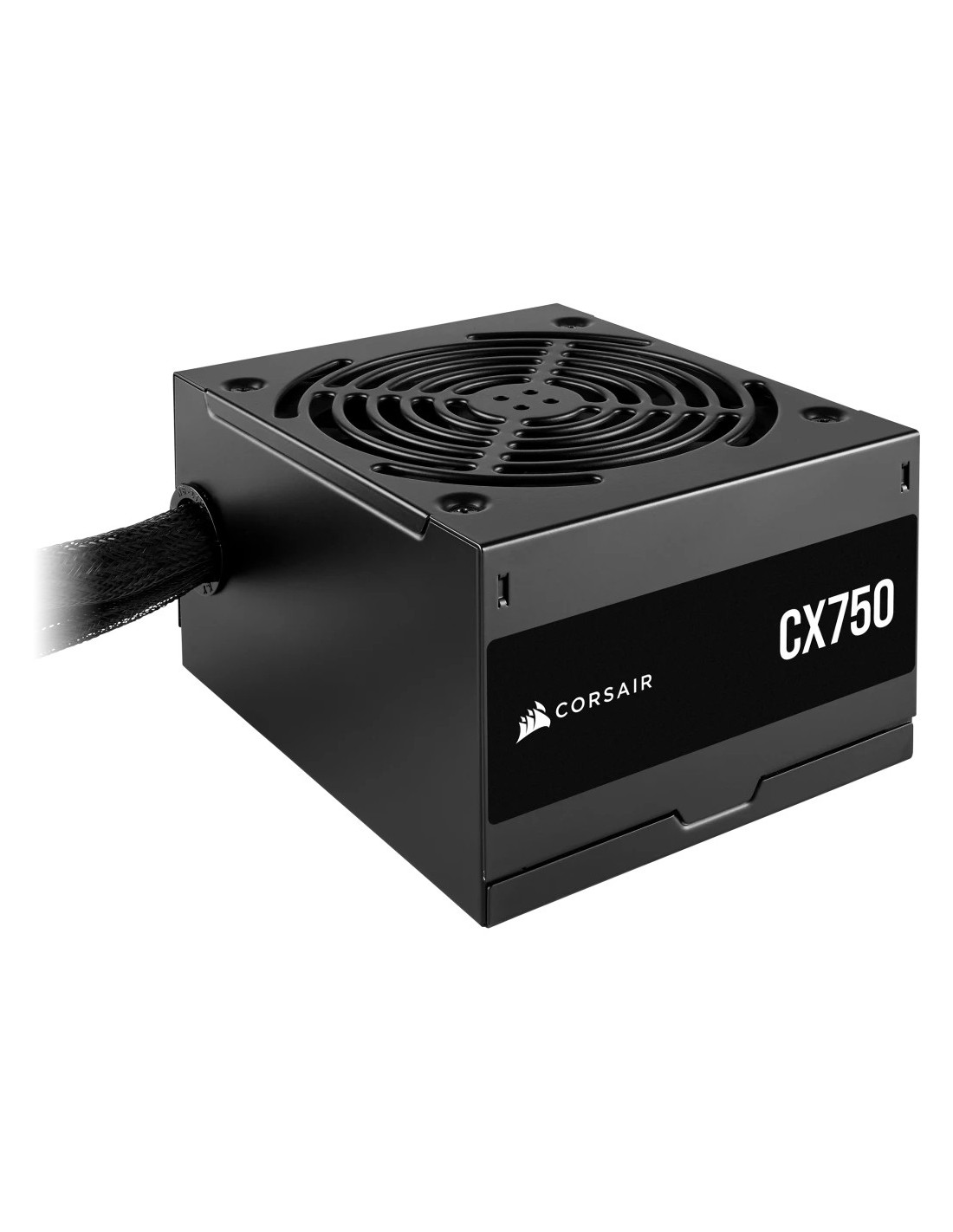 Corsair CX Series CX750. Potencia total: 750 W, Voltaje de entrada AC: 100 - 240 V, Frecuencia de entrada AC: 47 - 63 Hz. Alimentador de energía para tarjeta madre: 24-pin ATX, Longitud del cable de alimentación de la placa base: 60 cm, Tipo de cableado: No modular. Utilizar con: PC, Factor de forma de fuente de alimentación (PSU): ATX, Certificación 80 PLUS: 80 PLUS Bronze. Color del producto: Negro, Tipo de enfriamiento: Activo, Diámetro de ventilador: 12 cm. Ancho: 150 mm, Profundidad: 125 mm