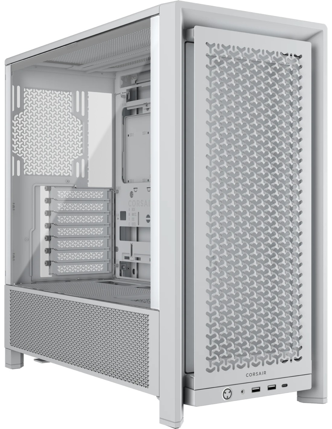 Corsair FRAME 4000D. Factor de forma: Midi Tower, Tipo: PC, Color del producto: Blanco. Factores de forma de la fuente de alimentación compatibles: ATX. Diámetro de ventiladores frontales soportados: 120,140,200 mm, Diámetro de ventiladores secundarios soportados: 120,140 mm, Diámetro de ventiladores traseros soportados: 120,140 mm. Tamaños de disco duro soportados: 2.5,3.5", Factor de forma de disco SSD: 2.5". Ancho: 239 mm, Profundidad: 490 mm, Altura: 486 mm