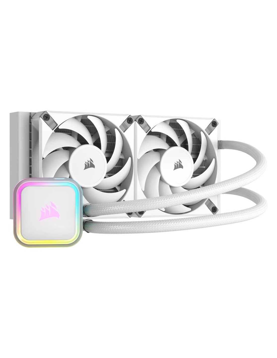 Corsair H100I Elite. Tipo: Sistema de refrigeración líquida todo en uno, Diámetro de ventilador: 12 cm, Velocidad de rotación (mín.): 400 RPM, Velocidad de rotación (máx.): 1850 RPM, Presión de aire mínima: 0,09 mmH2O, Presión máxima de aire: 1,93 mmH2O. Color del producto: Blanco