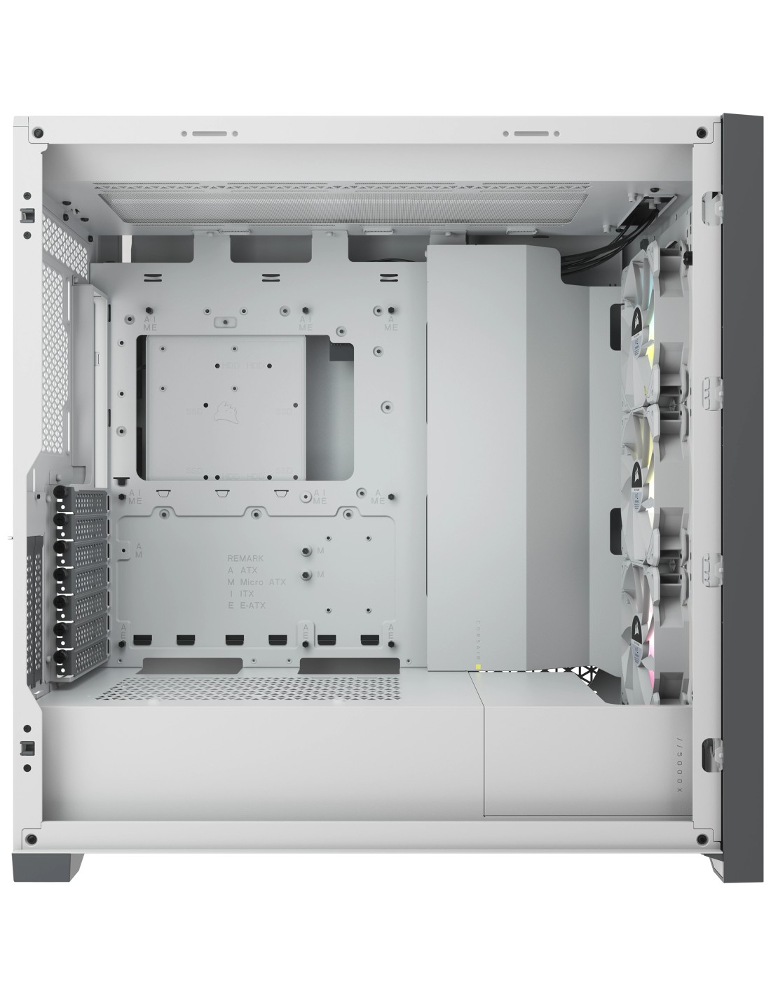 Corsair iCUE 5000X RGB. Factor de forma: Midi Tower, Tipo: PC, Color del producto: Blanco. Ubicación de fuente de alimentación: Fondo, Factores de forma de la fuente de alimentación compatibles: ATX. Ventiladores frontales instalados: 3x 120 mm, Diámetro de ventiladores frontales soportados: 120,140 mm, Diámetro de ventiladores secundarios soportados: 120 mm. Tamaños de disco duro soportados: 3.5", Factor de forma de disco SSD: 2.5". Ancho: 245 mm, Profundidad: 520 mm, Altura: 520 mm