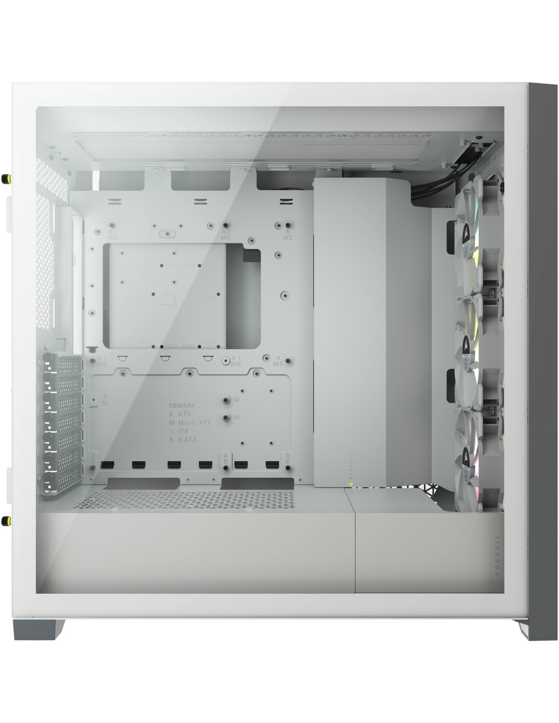 Corsair iCUE 5000X RGB. Factor de forma: Midi Tower, Tipo: PC, Color del producto: Blanco. Ubicación de fuente de alimentación: Fondo, Factores de forma de la fuente de alimentación compatibles: ATX. Ventiladores frontales instalados: 3x 120 mm, Diámetro de ventiladores frontales soportados: 120,140 mm, Diámetro de ventiladores secundarios soportados: 120 mm. Tamaños de disco duro soportados: 3.5", Factor de forma de disco SSD: 2.5". Ancho: 245 mm, Profundidad: 520 mm, Altura: 520 mm