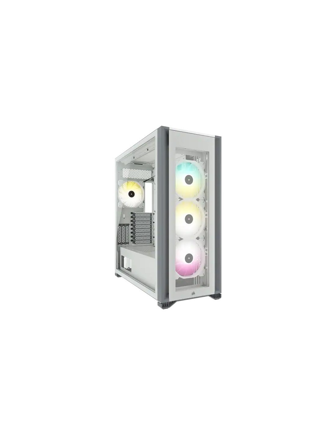 Corsair iCUE 7000X RGB. Factor de forma: Full Tower, Tipo: PC, Color del producto: Blanco. Ubicación de fuente de alimentación: Fondo, Factores de forma de la fuente de alimentación compatibles: ATX. Ventiladores frontales instalados: 3x 120 mm, Diámetro de ventiladores frontales soportados: 120,140 mm, Ventiladores traseros instalados: 1x 120 mm. Tamaños de disco duro soportados: 3.5", Factor de forma de disco SSD: 2.5". Ancho: 248 mm, Profundidad: 550 mm, Altura: 600 mm