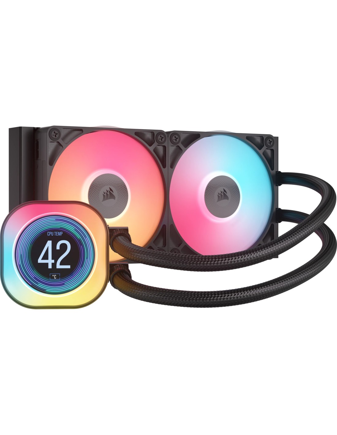 Corsair iCUE LINK TITAN 240 RX LCD. Tipo: Refrigerador de aire, Diámetro de ventilador: 12 cm, Velocidad de rotación (mín.): 300 RPM, Velocidad de rotación (máx.): 2100 RPM. Ancho: 125 mm, Profundidad: 125 mm, Altura: 275 mm. Color del producto: Negro