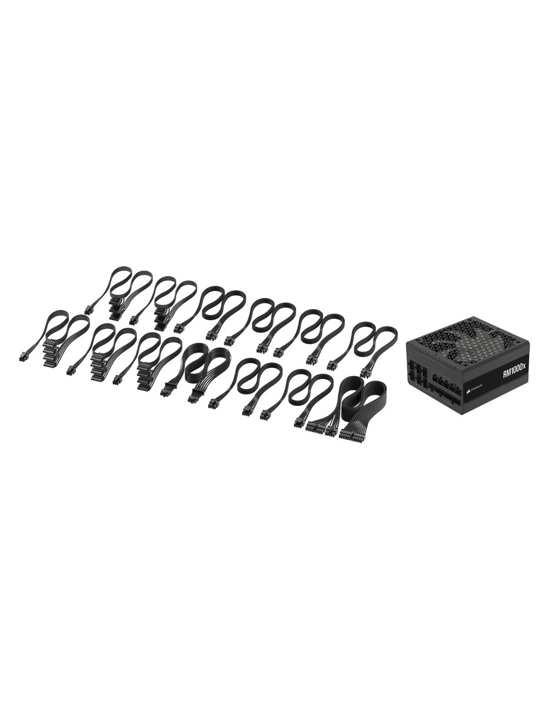 Corsair RMx Series RM1000x. Potencia total: 1000 W, Voltaje de entrada AC: 100 - 240 V, Frecuencia de entrada AC: 47 - 63 Hz. Alimentador de energía para tarjeta madre: 24-pin ATX, Tipo de cableado: Totalmente modular. Utilizar con: PC, Factor de forma de fuente de alimentación (PSU): ATX, Certificación 80 PLUS: 80 PLUS Gold. Color del producto: Negro, Tipo de enfriamiento: Activo, Diámetro de ventilador: 14 cm. Certificados de conformidad: RoHS