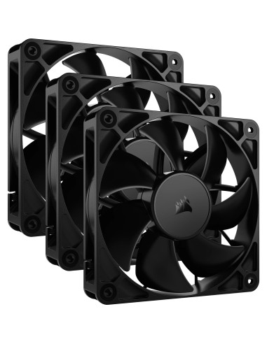 Corsair RS120. Tipo: Ventilador, Diámetro de ventilador: 12 cm, Velocidad de rotación (mín.): 420 RPM, Velocidad de rotación (máx.): 2100 RPM, Presión de aire mínima: 0,2 mmH2O, Presión máxima de aire: 4,15 mmH2O. Color del producto: Negro