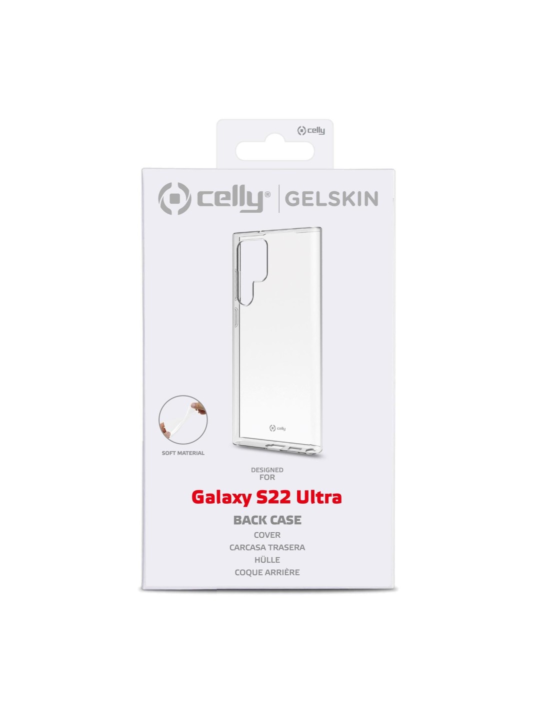 Celly GELSKI1012. Tipo de funda: Funda, Marca compatible: Celly, Compatibilidad: Samsung Galaxy S22 Ultra, Tamaño máximo de pantalla: 15,5 cm (6.1"), Coloración de superficie: Monocromo, Color del producto: Transparente
