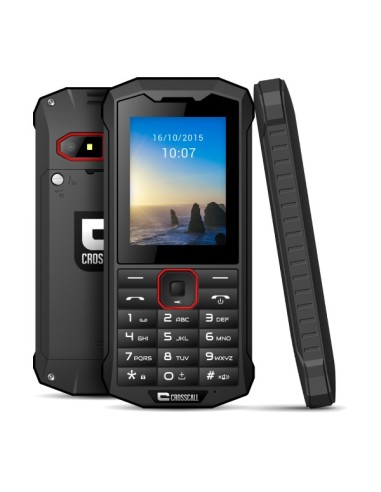 Crosscall Spider X4. Factor de forma: Barra. Capacidad de la tarjeta SIM: SIM doble. Diagonal de la pantalla: 6,1 cm (2.4"), Resolución de la pantalla: 240 x 320 Pixeles. Resolución de la cámara trasera (numérica): 2 MP. Bluetooth. Radio FM. Tecnología de batería: Ión de litio, Capacidad de batería: 1300 mAh, Tiempo de suspendido (2G): 312 h. Color del producto: Negro