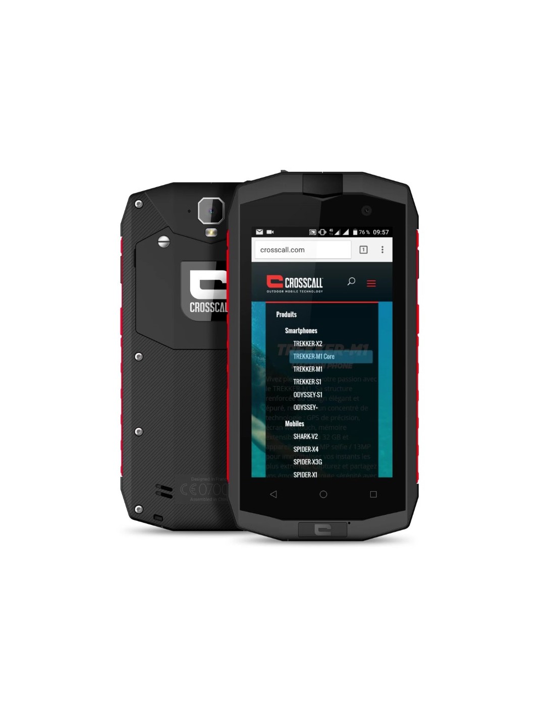 Crosscall Trekker-M1 Core. Diagonal de la pantalla: 11,4 cm (4.5"), Resolución de la pantalla: 854 x 480 Pixeles. Frecuencia del procesador: 1,1 GHz, Familia de procesador: Qualcomm Snapdragon, Modelo del procesador: 210. Capacidad de RAM: 2 GB, Capacidad de almacenamiento interno: 16 GB. Resolución de la cámara trasera (numérica): 8 MP, Tipo de cámara trasera: Cámara única. Capacidad de la tarjeta SIM: SIM doble. Sistema operativo instalado: Android 6.0.1. Capacidad de batería: 3000 mAh. Color del producto: Negro, Rojo. Peso: 220 g