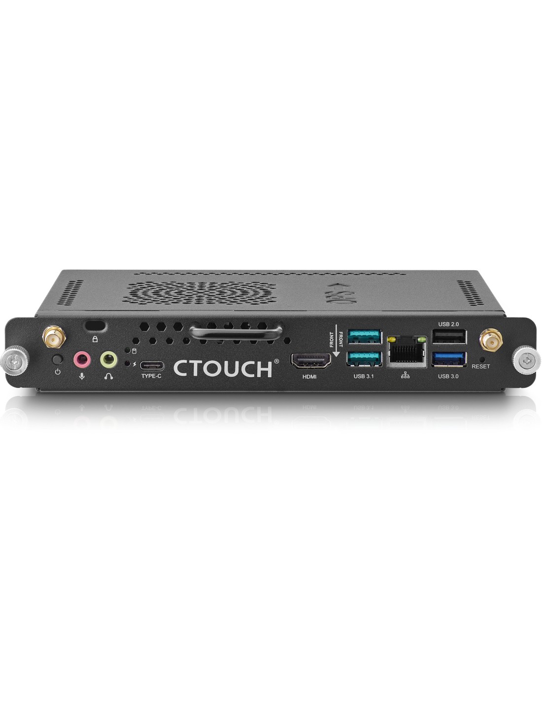 CTOUCH OPS. Frecuencia del procesador: 2,1 GHz, Fabricante de procesador: Intel, Familia de procesador: Intel® Core™ i3. Memoria interna: 8 GB, Tipo de memoria interna: DDR4-SDRAM, Velocidad de memoria del reloj: 2133 MHz. Capacidad total de almacenaje: 128 GB, Unidad de almacenamiento: SSD, Factor de forma de disco SSD: M.2. Modelo de adaptador gráfico incorporado: Intel® HD Graphics 620. Color del producto: Negro