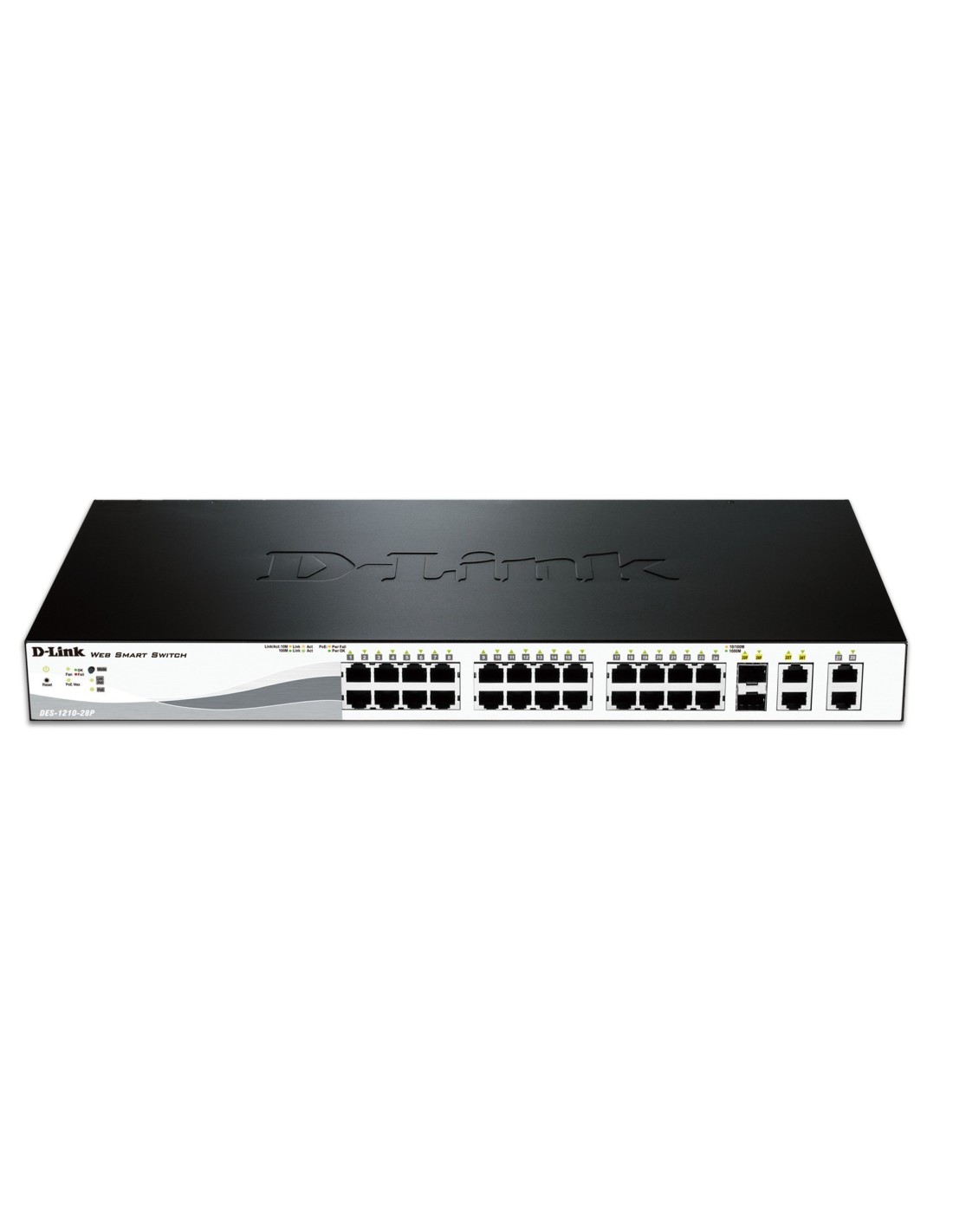 D-Link DES-1210-28P. Tipo de interruptor: Gestionado, Capa del interruptor: L2. Cantidad de puertos básicos de conmutación RJ-45 Ethernet: 28. Capacidad de conmutación: 12,8 Gbit/s. Energía sobre Ethernet (PoE). Montaje en rack