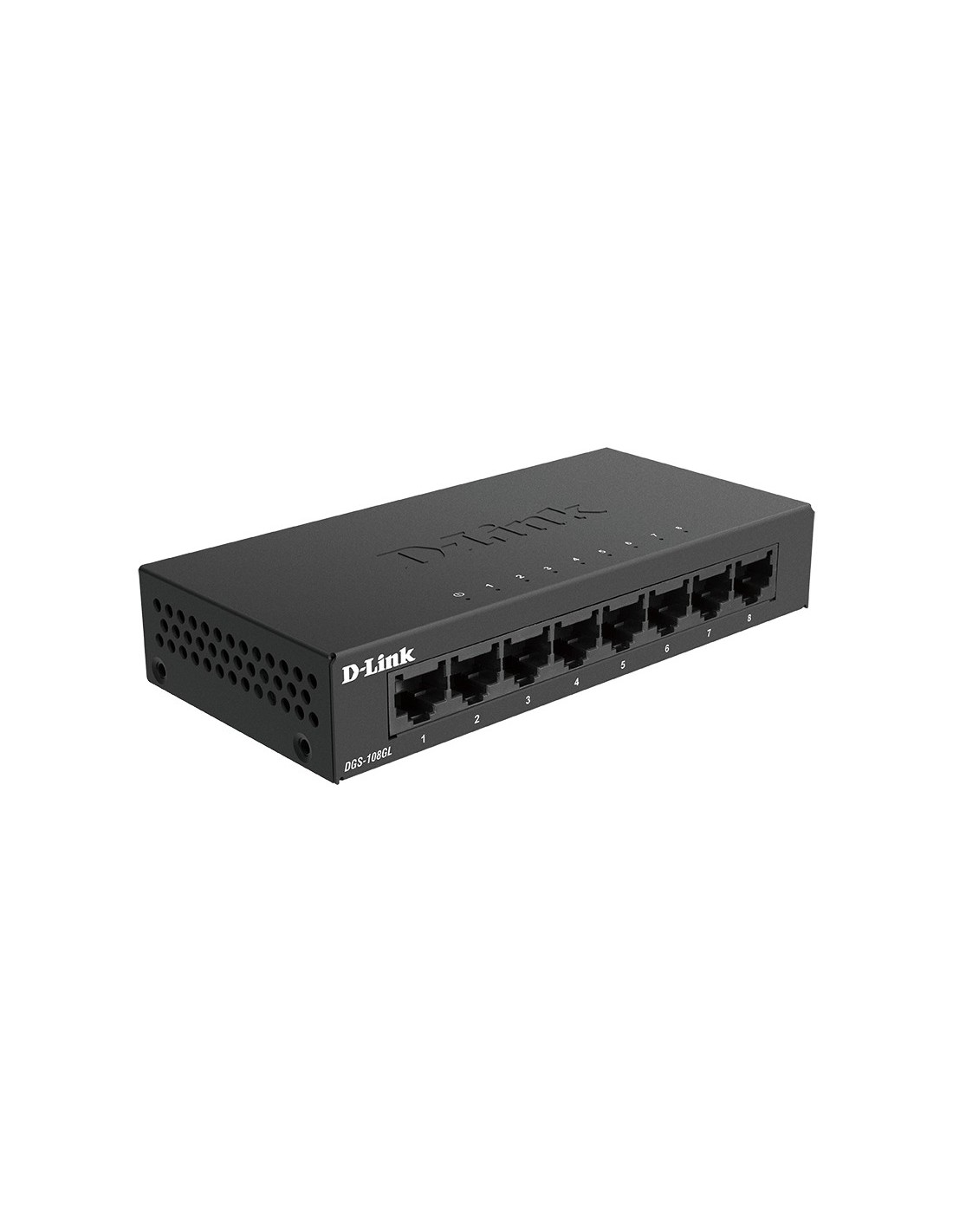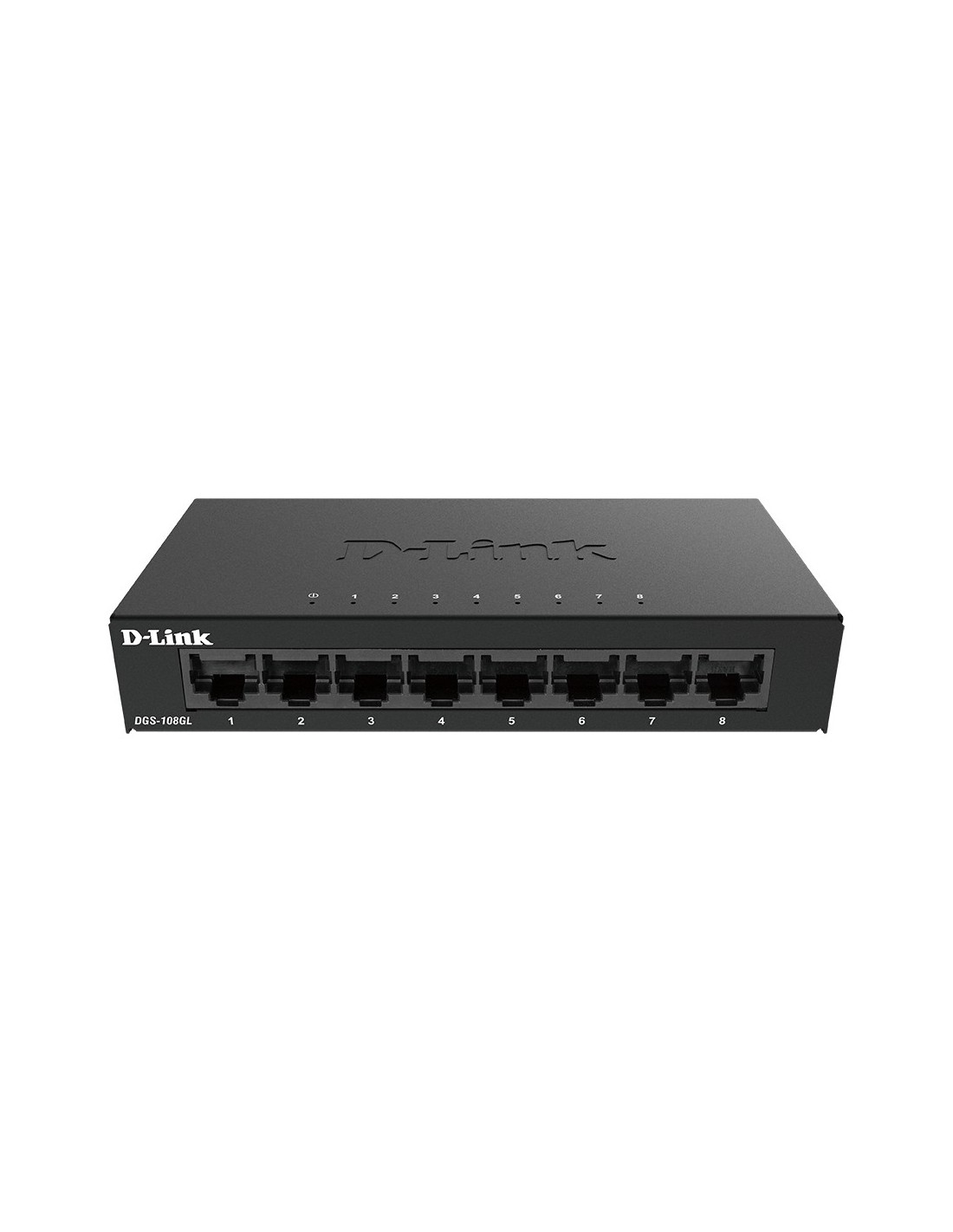 D-Link DGS-108GL. Tipo de interruptor: No administrado. Puertos tipo básico de conmutación RJ-45 Ethernet: Gigabit Ethernet (10/100/1000), Cantidad de puertos básicos de conmutación RJ-45 Ethernet: 8. Tabla de direcciones MAC: 4000 entradas, Capacidad de conmutación: 16 Gbit/s. Estándares de red: IEEE 802.3, IEEE 802.3ab, IEEE 802.3az, IEEE 802.3p, IEEE 802.3u, IEEE 802.3x. Voltaje de entrada DC: 5 V. Conector eléctrico: Toma de entrada de CC
