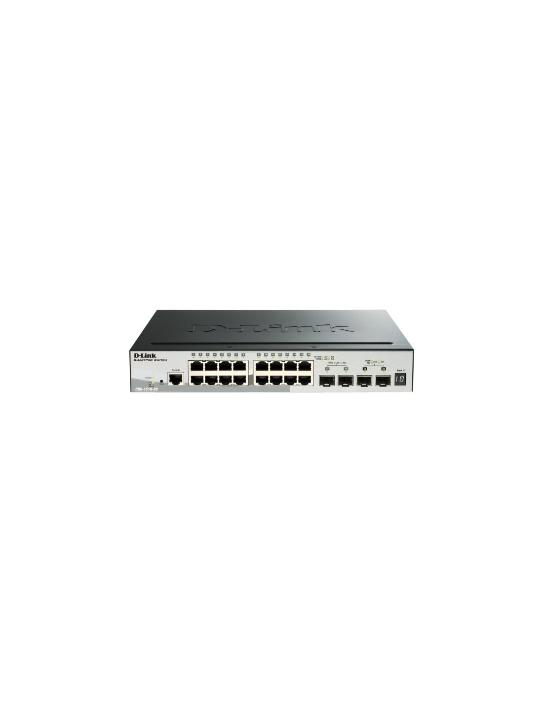 D-Link DGS-1510-52XMP. Tipo de interruptor: Gestionado, Capa del interruptor: L3. Puertos tipo básico de conmutación RJ-45 Ethernet: Gigabit Ethernet (10/100/1000), Cantidad de puertos básicos de conmutación RJ-45 Ethernet: 48. Bidireccional completo (Full duplex). Tabla de direcciones MAC: 16000 entradas, Capacidad de conmutación: 128 Gbit/s. Estándares de red: IEEE 802.1p, IEEE 802.3, IEEE 802.3ab, IEEE 802.3u, IEEE 802.3x. Energía sobre Ethernet (PoE). Montaje en rack