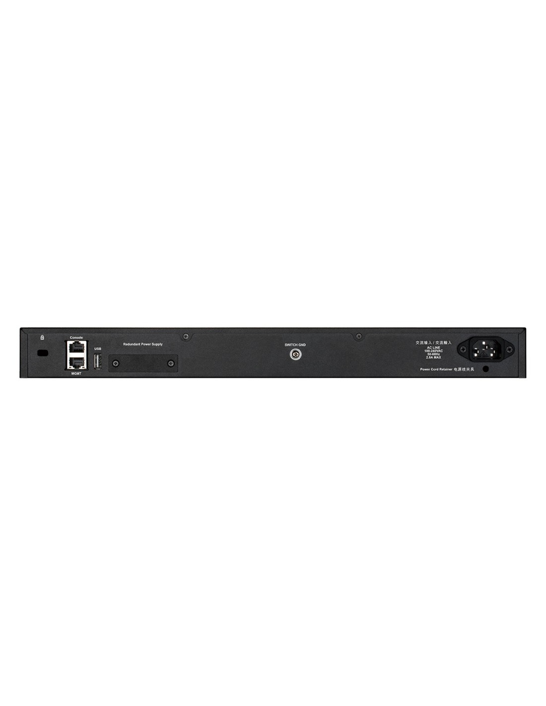 D-Link DGS-3130-54TS/E. Tipo de interruptor: Gestionado, Capa del interruptor: L3. Puertos tipo básico de conmutación RJ-45 Ethernet: Gigabit Ethernet (10/100/1000), Cantidad de puertos básicos de conmutación RJ-45 Ethernet: 48, Cantidad de puertos USB 2.0: 1. Tabla de direcciones MAC: 16384 entradas, Capacidad de conmutación: 216 Gbit/s. Estándares de red: IEEE 802.1D, IEEE 802.1Q, IEEE 802.1p, IEEE 802.1s, IEEE 802.1v, IEEE 802.1w, IEEE 802.1x, IEEE.... Conector eléctrico: Conector de alimentación AC-in. Montaje en rack