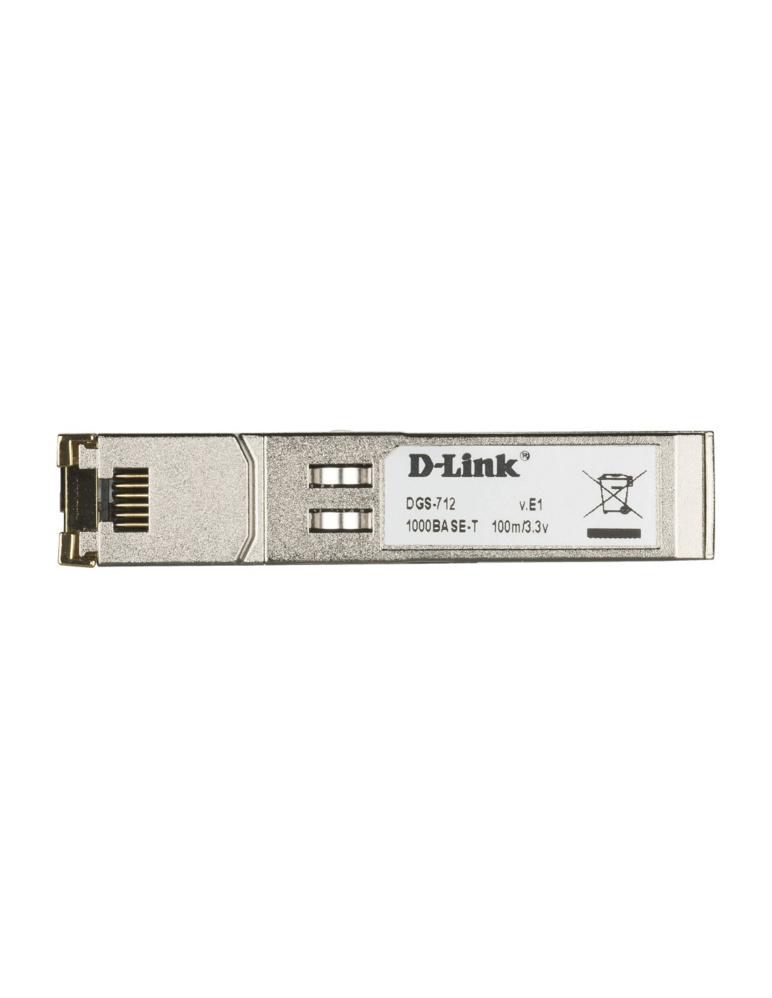 D-Link DGS-712. Tipo de transceptor SFP: Cobre, Rango máximo de transferencia de datos: 1000 Mbit/s, Tipo de interfaz: SFP. Color del producto: Metálico, Tiempo medio entre fallos: 5617000 h. Voltaje máximo: 3,3 V. Seguridad: CSA, TUV, Certificación: FCC Class A CE Class A VCCI Class A. Ancho: 13,7 mm, Profundidad: 70,2 mm, Altura: 13,4 mm