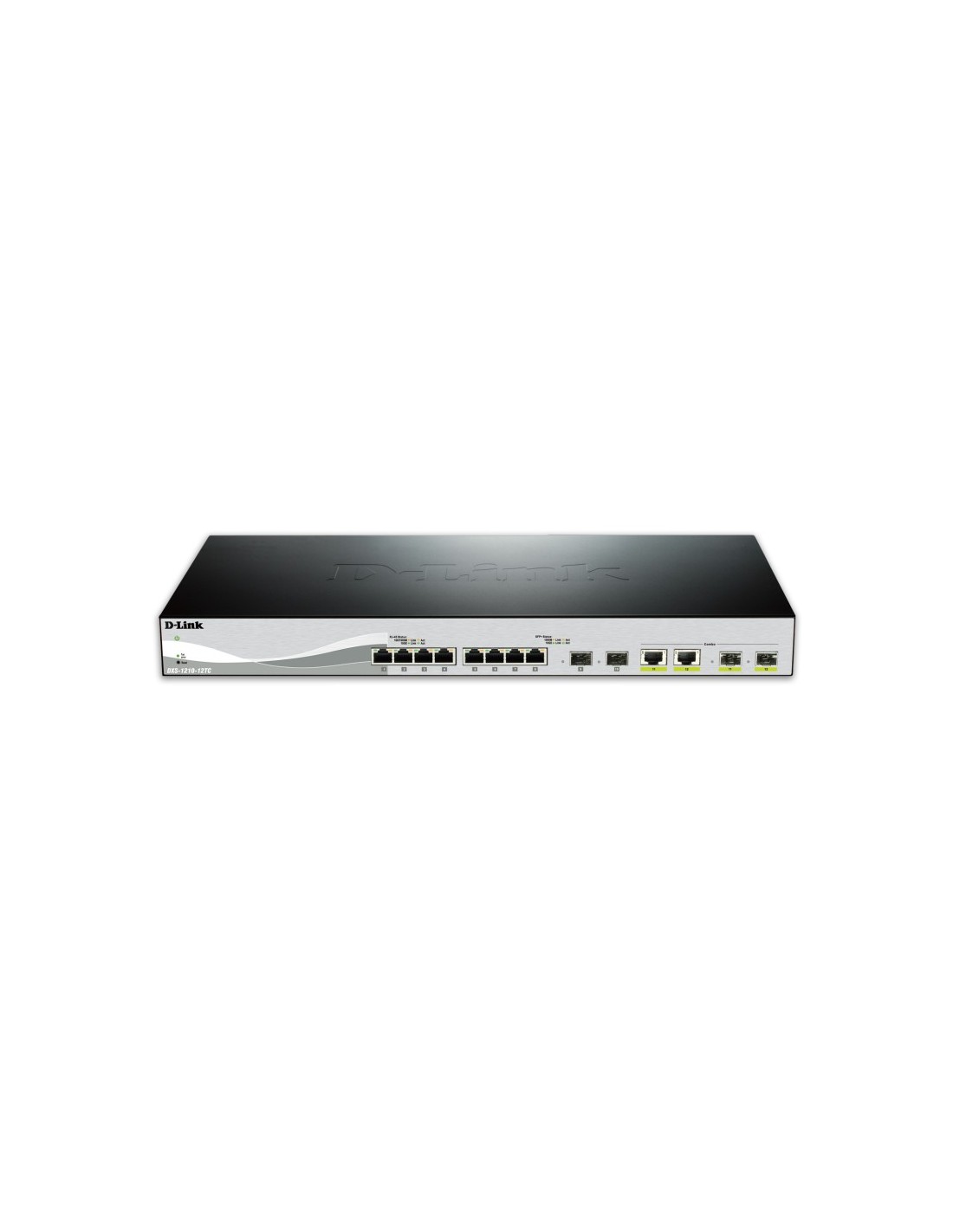 D-Link DXS-1210-12TC/E. Tipo de interruptor: Gestionado, Capa del interruptor: L2. Puertos tipo básico de conmutación RJ-45 Ethernet: 10G Ethernet (100/1000/10000), Cantidad de puertos básicos de conmutación RJ-45 Ethernet: 10. Tabla de direcciones MAC: 16000 entradas, Capacidad de conmutación: 240 Gbit/s. Estándares de red: IEEE 802.3ab, IEEE 802.3ae, IEEE 802.3an, IEEE 802.3az, IEEE 802.3u, IEEE 802.3z. Conector eléctrico: Toma de entrada de CC. Montaje en rack, Factor de forma: 1U
