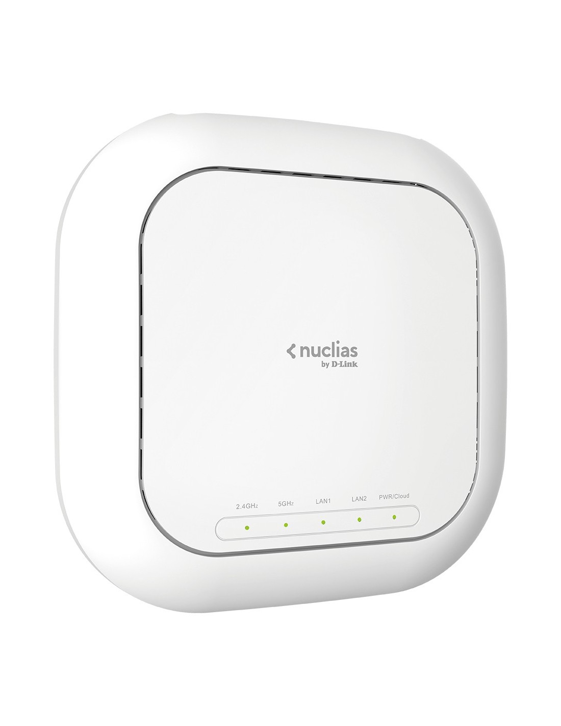 D-Link Nuclias AX3600. 2,4 GHz, 5 GHz, Rango máximo de transferencia de datos: 2402 Mbit/s. Algoritmos de seguridad soportados: SSID, WPA, WPA-RADIUS, WPA2, WPA3. Ethernet LAN, velocidad de transferencia de datos: 10,100,1000,25000 Mbit/s. Energía sobre Ethernet (PoE). Color del producto: Blanco. Consumo de energía (max): 27 W