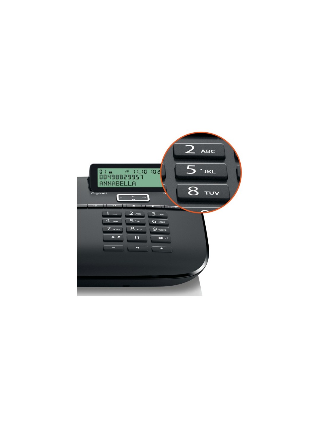 Gigaset DA 611, Teléfono analógico, Terminal con conexión por cable, Altavoz, 100 entradas, Identificador de llamadas, Negro