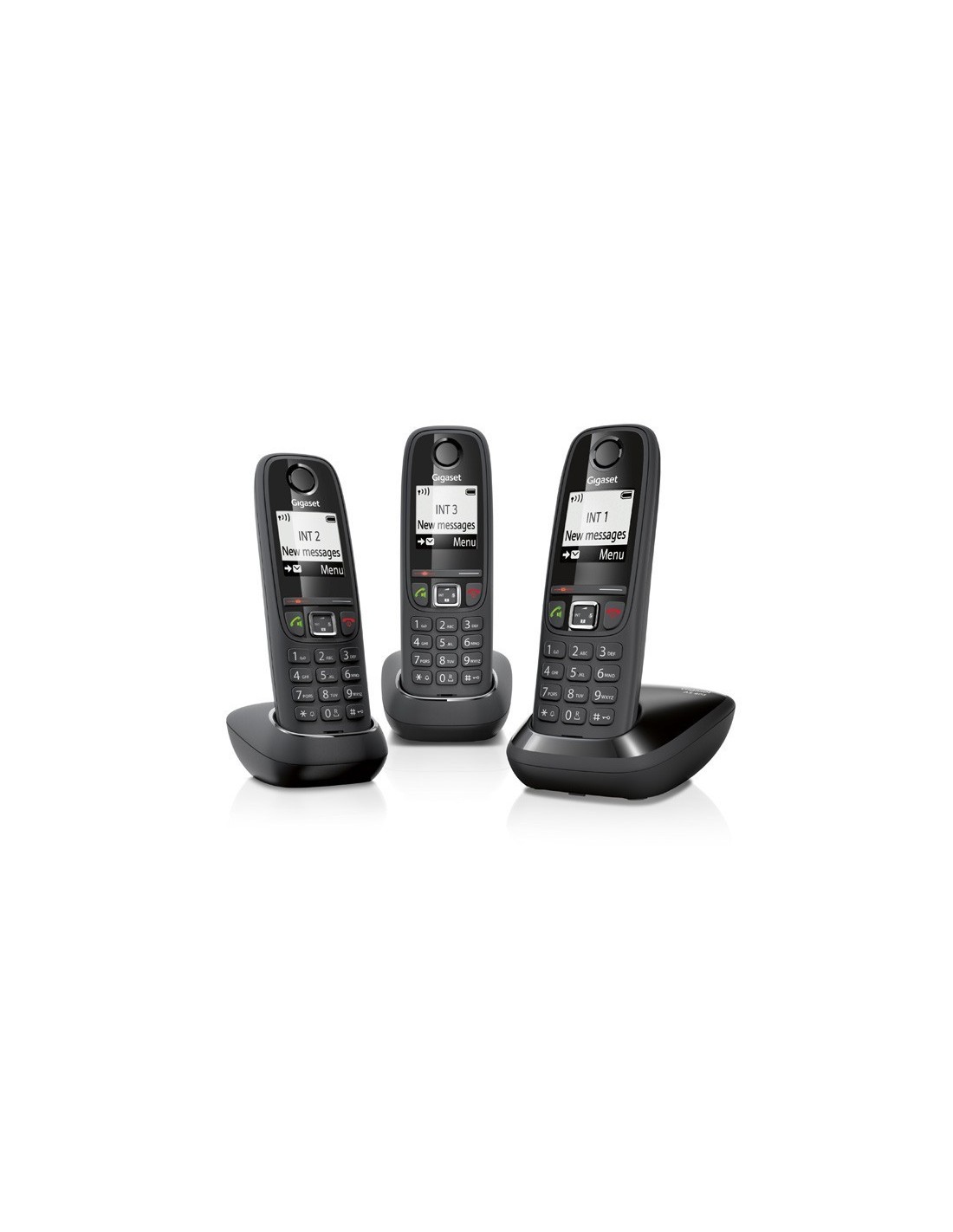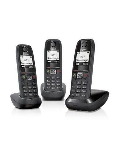 Gigaset AS405 Trio, Teléfono DECT, Altavoz, 100 entradas, Identificador de llamadas, Servicios de mensajes cortos (SMS), Negro