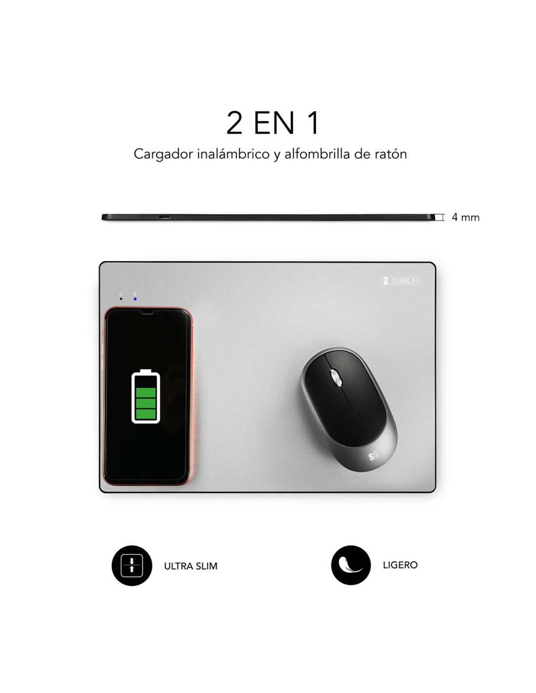 SUBBLIM Alfombrilla con cargador Inalámbrico Mousepad Wireless Charger Aluminum Silver 10W, Aluminio, Negro, Monocromo, Aluminio