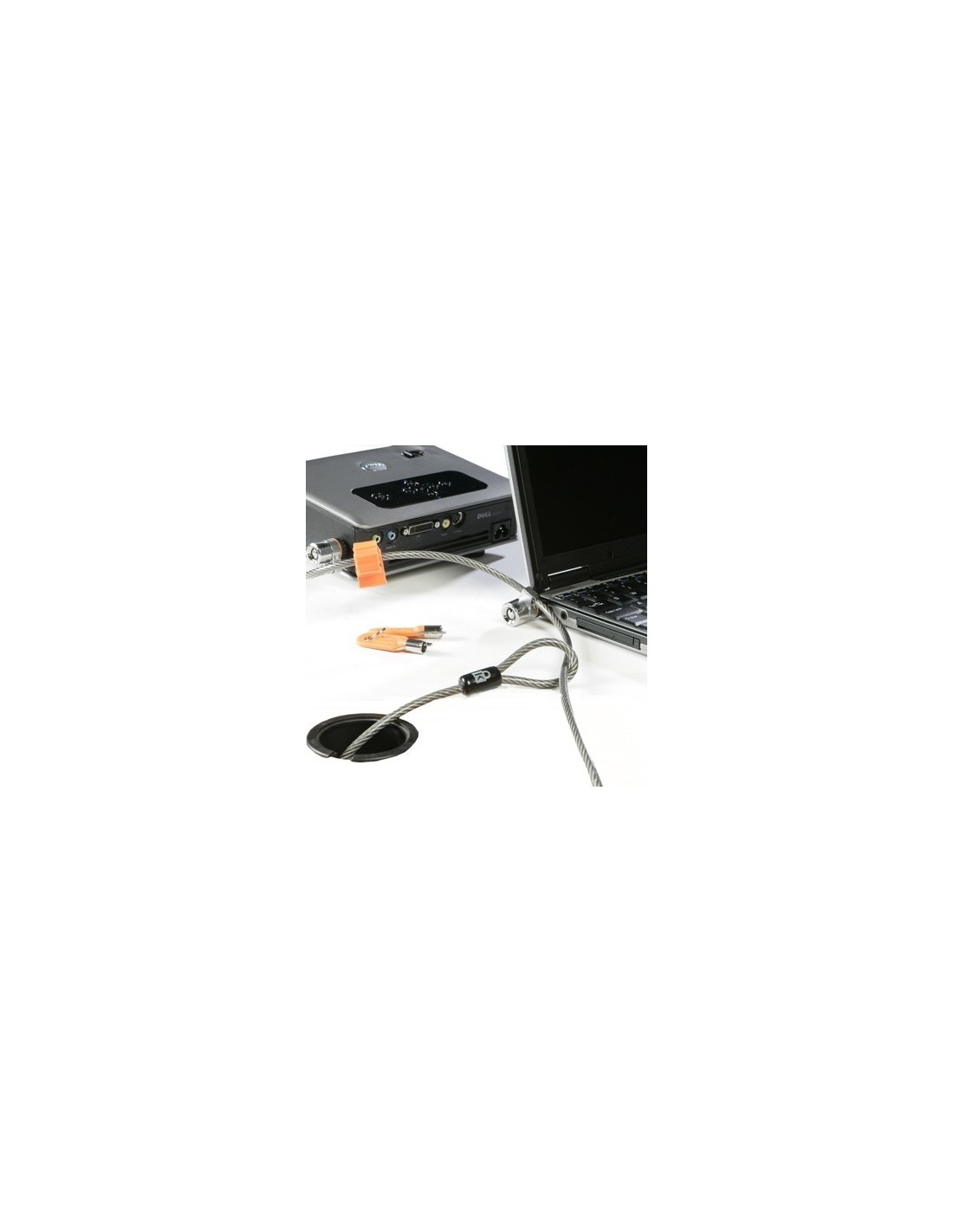 - Características 2 : Twin Microsaver puede usarse para asegurar portátiles notebook al monitor de pantalla plana, estación docking o proyector de Dell