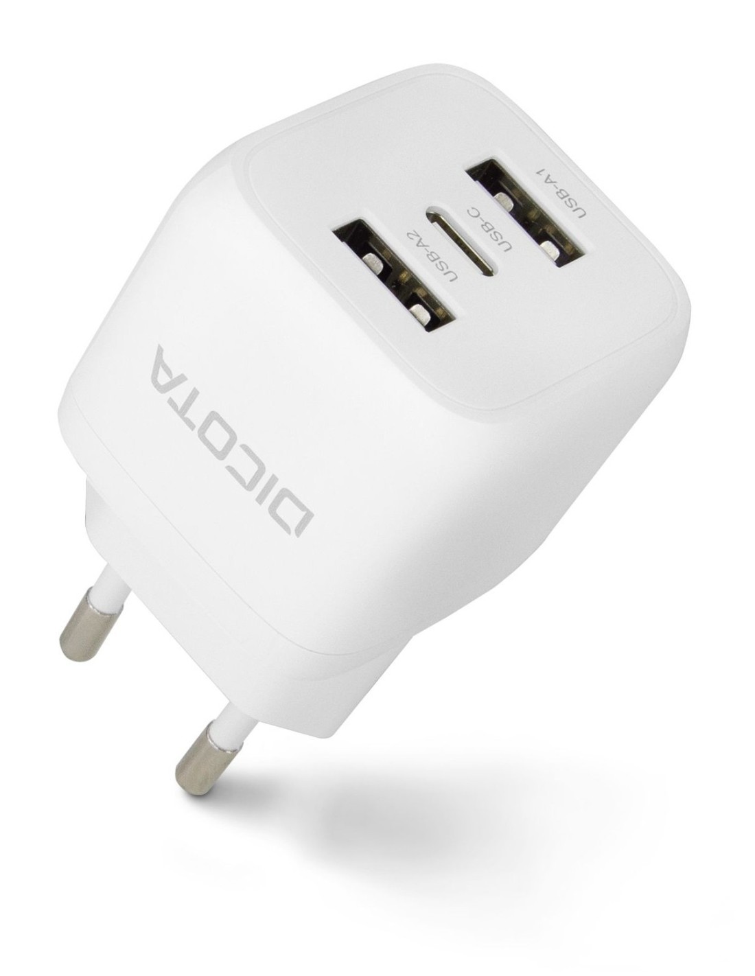 DICOTA D32069. Tipo de cargador: Interior, Alimentación: Corriente alterna, Compatibilidad del cargador: Portátil, Smartphone. Voltaje de entrada: 100 - 240 V. Número de puertos USB Tipo C: 1, Carga rápida, Funciones de protección de poder: Sobreintensidad, Sobrevoltaje, Sobrecalentamiento, Cortocircuito. Color del producto: Blanco