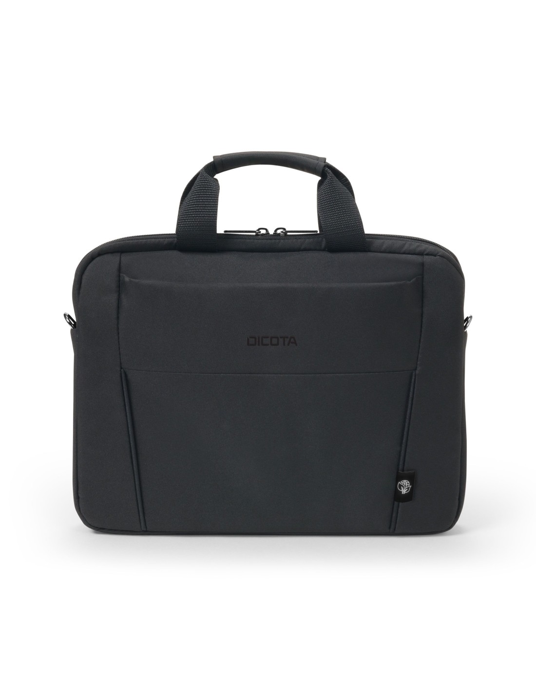 DICOTA Eco Slim Case BASE. Tamaño máximo de pantalla: 35,8 cm (14.1"), Asa de transporte, Tirante para hombro. Peso: 350 g. Coloración de superficie: Monocromo