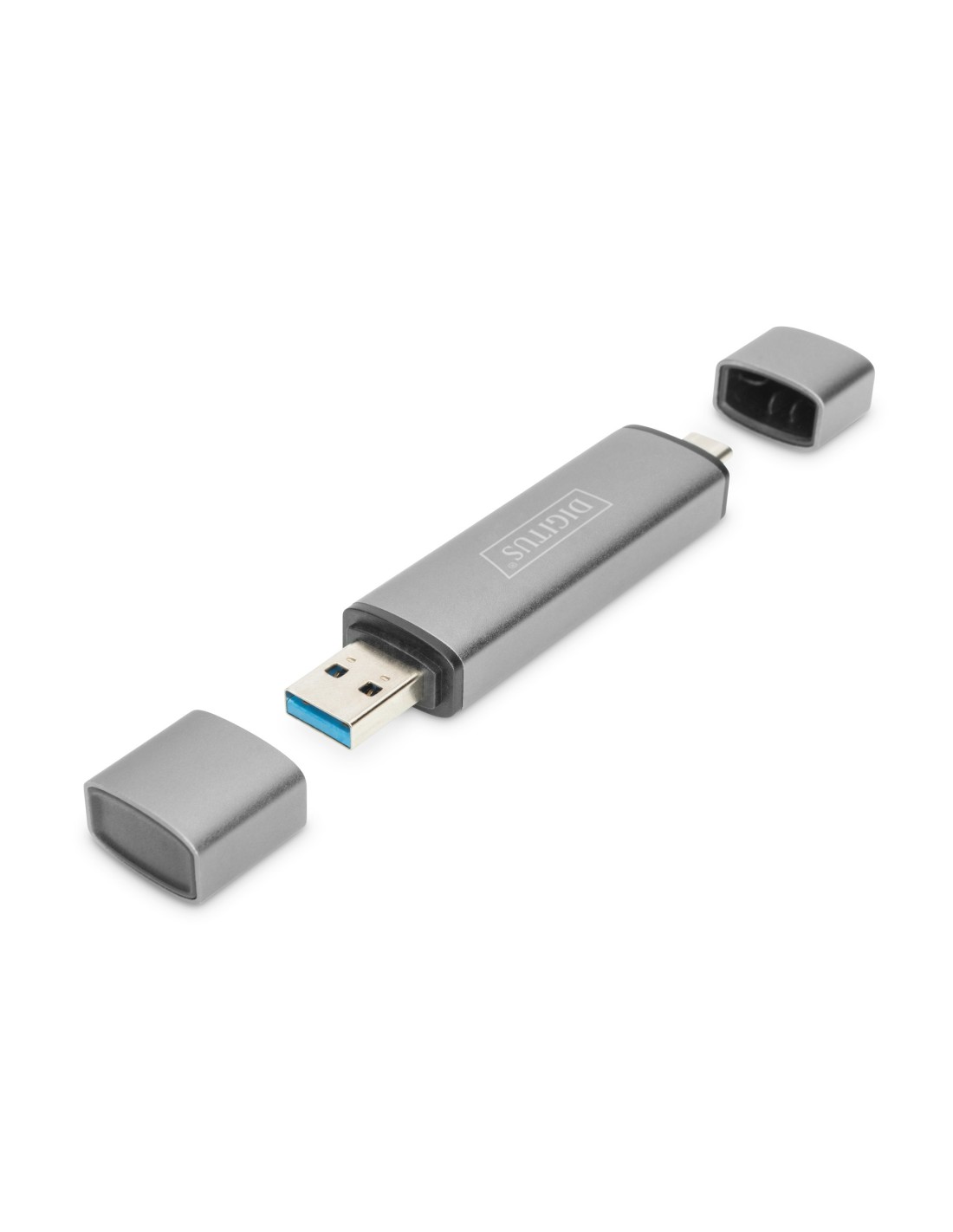 Digitus Dual Card Reader Hub USB-C™ / USB 3.0, OTG, MicroSD (TransFlash), SD, Aluminio, 5000 Mbit/s, Aluminio, CE, USB 3.2 Gen 1 (3.1 Gen 1) Type-A/Type-C