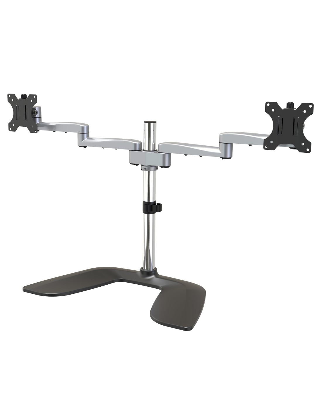 Trabaje más eficientemente, gracias a una configuración de doble monitor. Este soporte horizontal para doble monitor le permite instalar dos monitores de hasta 32" y peso máximo de 8kg por monitor compatibles con soporte VESA (75x75, 100x100mm).