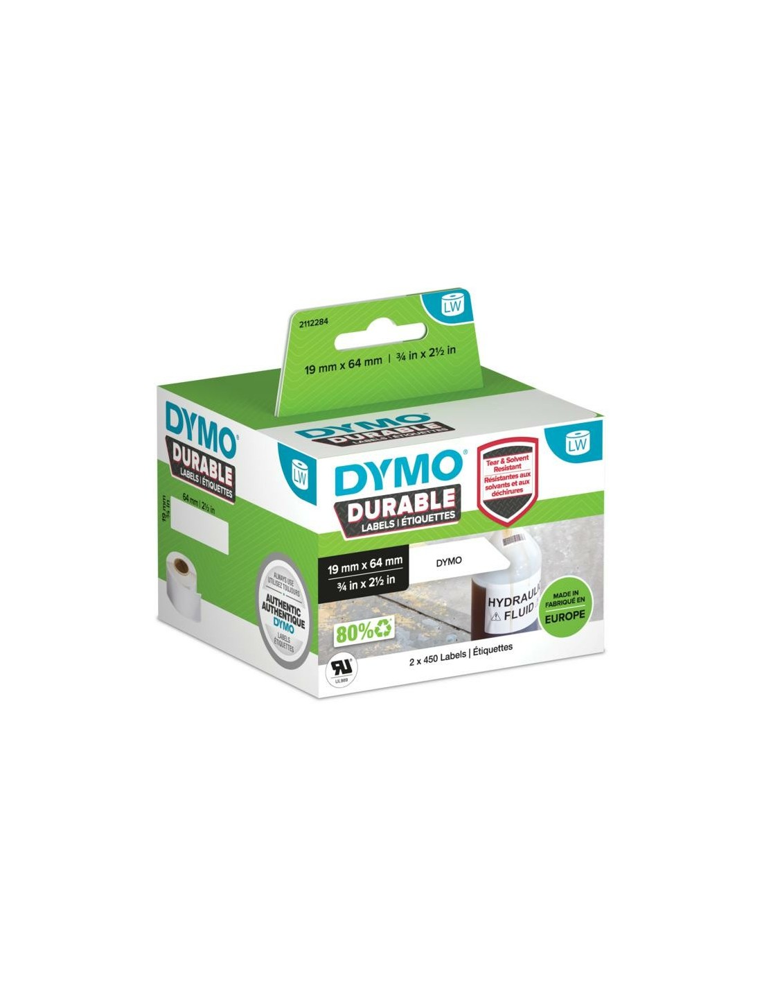 DYMO 2112284. Color del producto: Blanco, Tipo de etiqueta: Etiqueta para impresora autoadhesiva, Material: Polipropileno (PP). Anchura de etiqueta: 1,9 cm, Altura de etiqueta: 6,4 cm, Peso: 300 g. Etiquetas por paquete: 900 pieza(s), Etiquetas por rollo: 450 pieza(s). País de origen: Bélgica