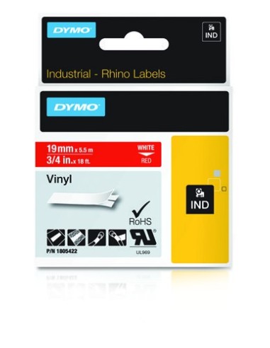 DYMO Etiquetas de Vinilo IND. Color de etiqueta: Blanco sobre rojo, Color del producto: Multicolor, Material: Vinilo. Ancho de cinta: 1,9 cm, Longitud de cinta: 5,5 m, Tipo de embalaje: Caja