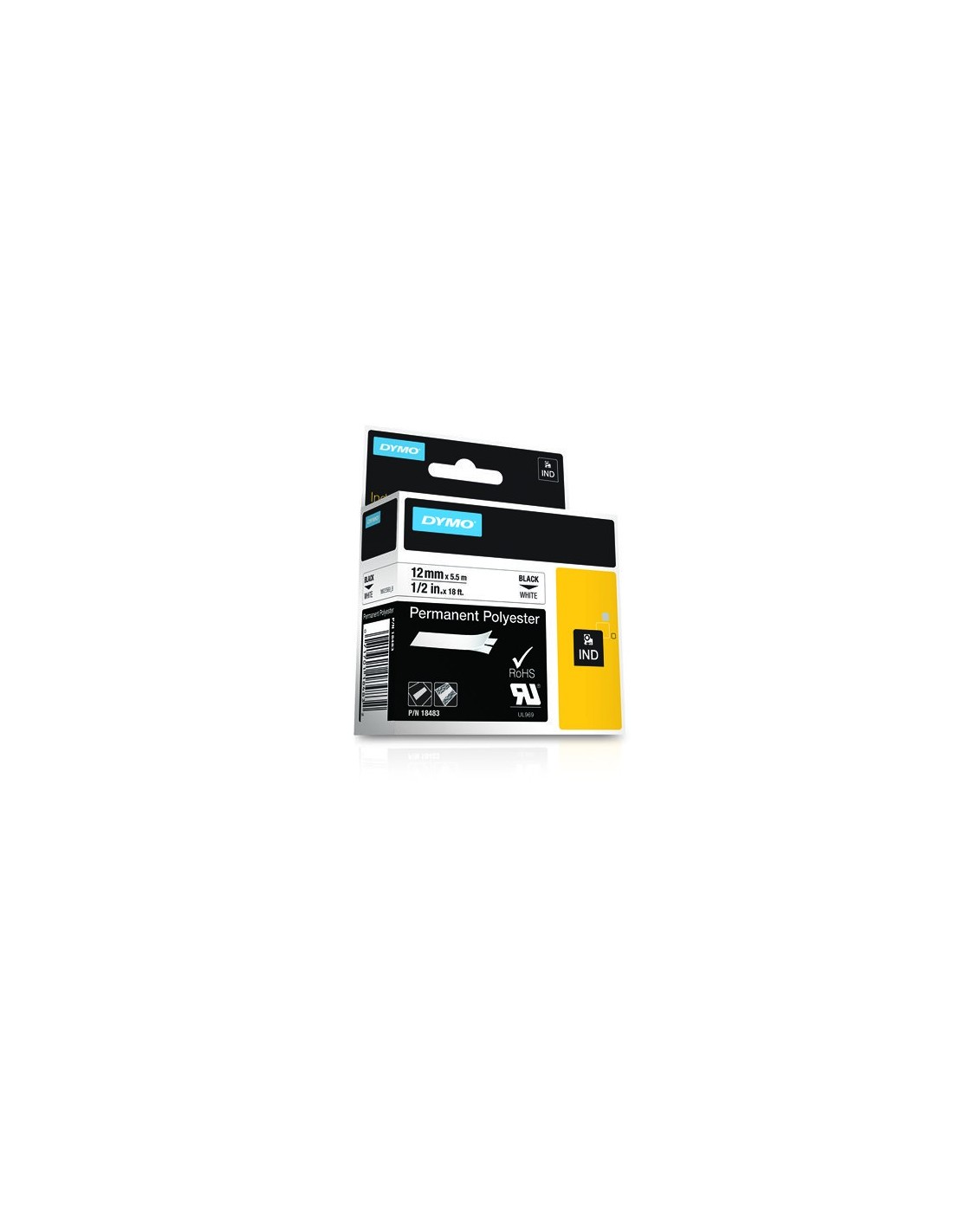 DYMO Poliéster Permanente IND. Color de etiqueta: Negro sobre blanco, Color del producto: Multicolor, Material: Poliéster. Ancho de cinta: 1,2 cm, Longitud de cinta: 5,5 m, Tipo de embalaje: Caja